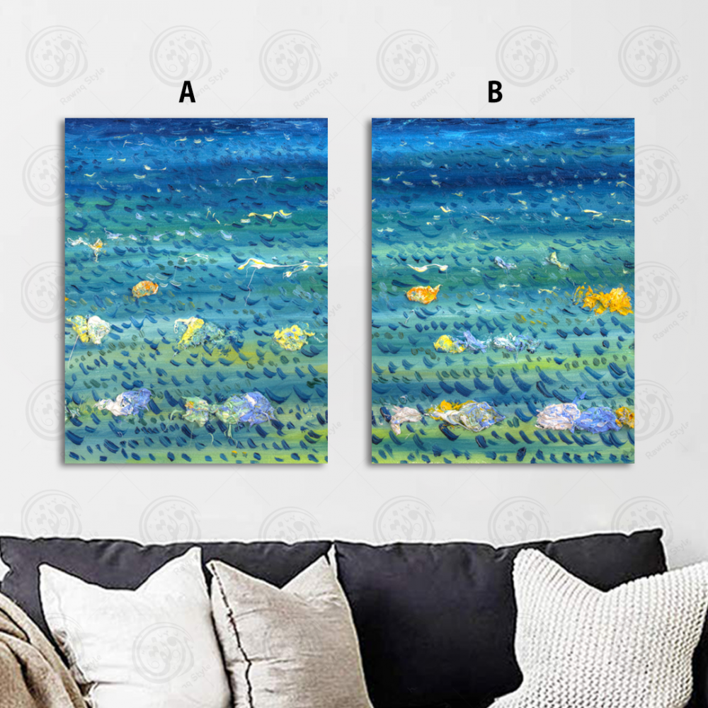 Tableaux d'art abstrait en bleu et jaune - E2PR-20450