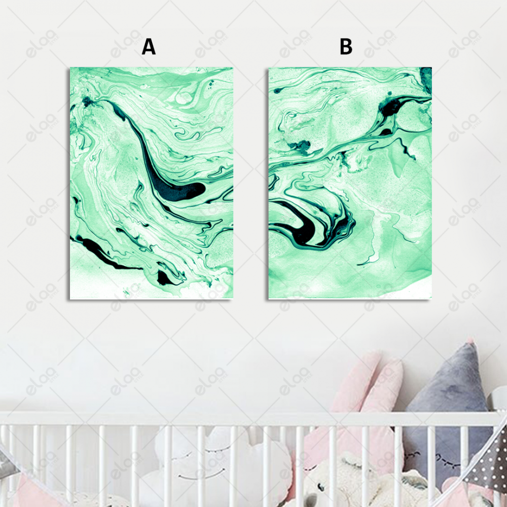 Tableaux d'art abstrait dans les tons verts et noirs - E2P1121
