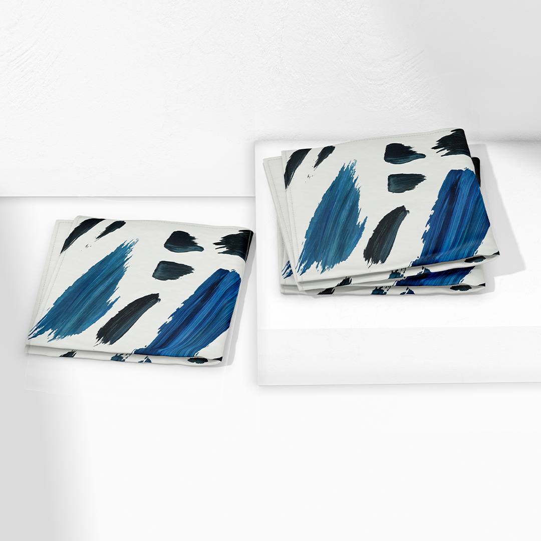 Serviettes Cocktail - Coups de pinceau peinture acrylique bleu fond beige - m10076