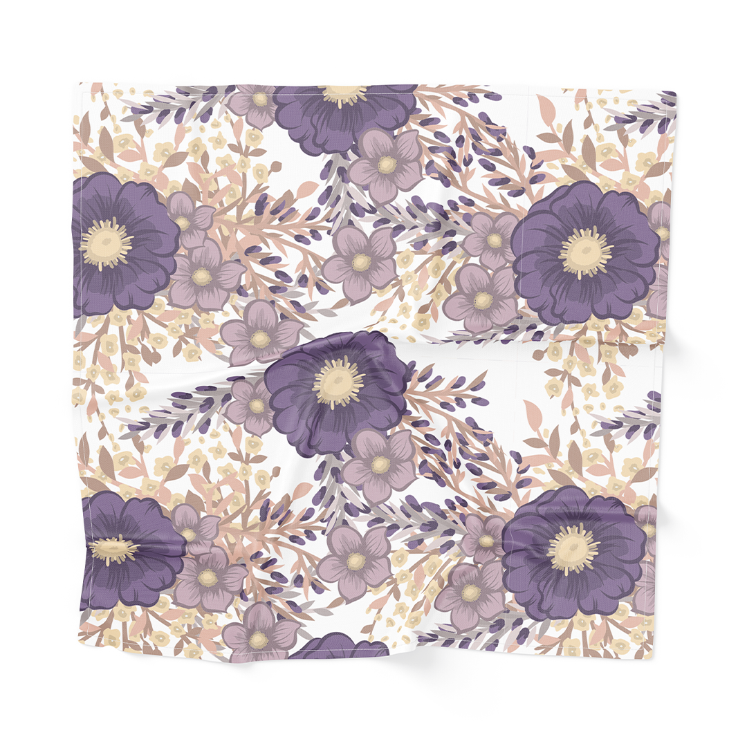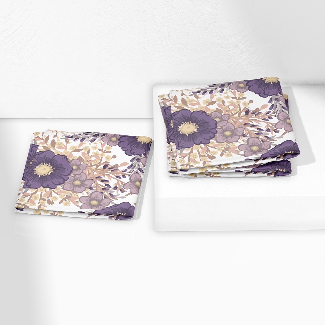 Serviettes cocktail - Bouquet de fleurs avec motif sans couture - Violet grisâtre - Blanc rose - fond blanc - m10081