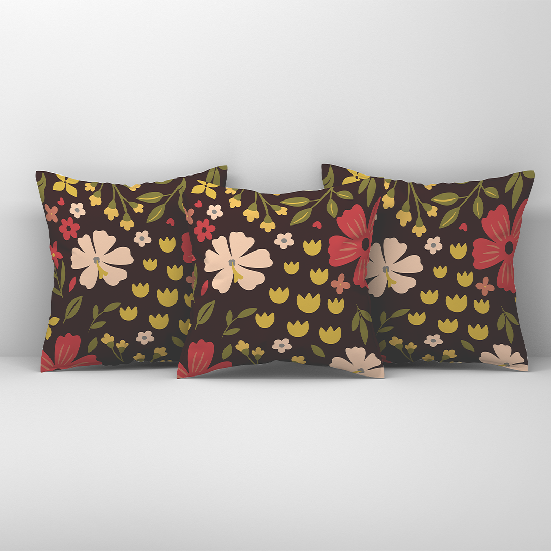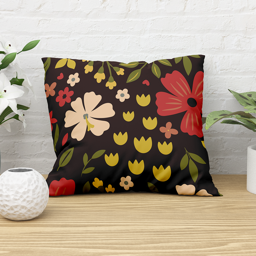 Coussin carré - Motif simple sans couture avec des fleurs sur un fond marron foncé - M10114