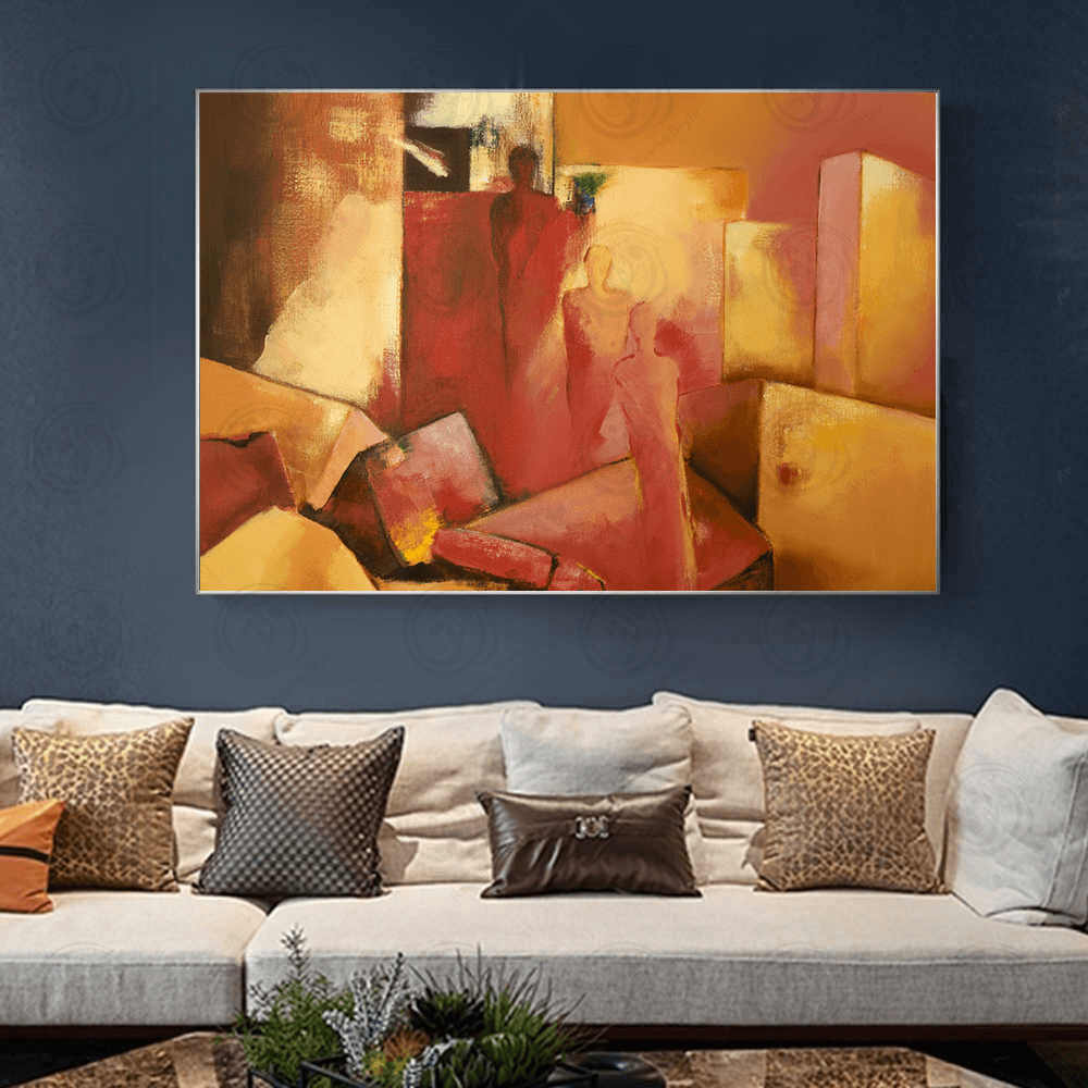 სამი ფიგურის აბსტრაქტული მხატვრობა აკრილის საღებავებით - E1PR-10115