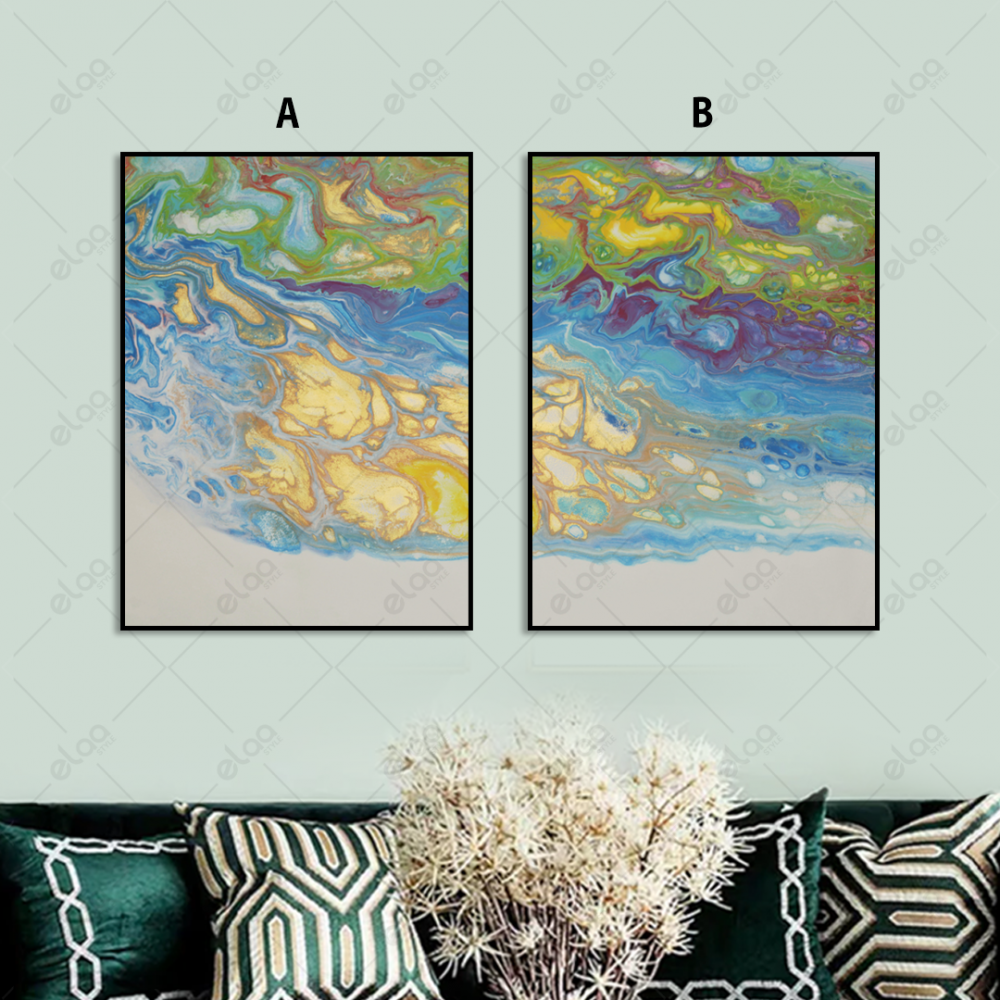 აბსტრაქტული ხელოვნების ნახატები მწვანე, ლურჯი და ოქროს ფერებში - E2P1199