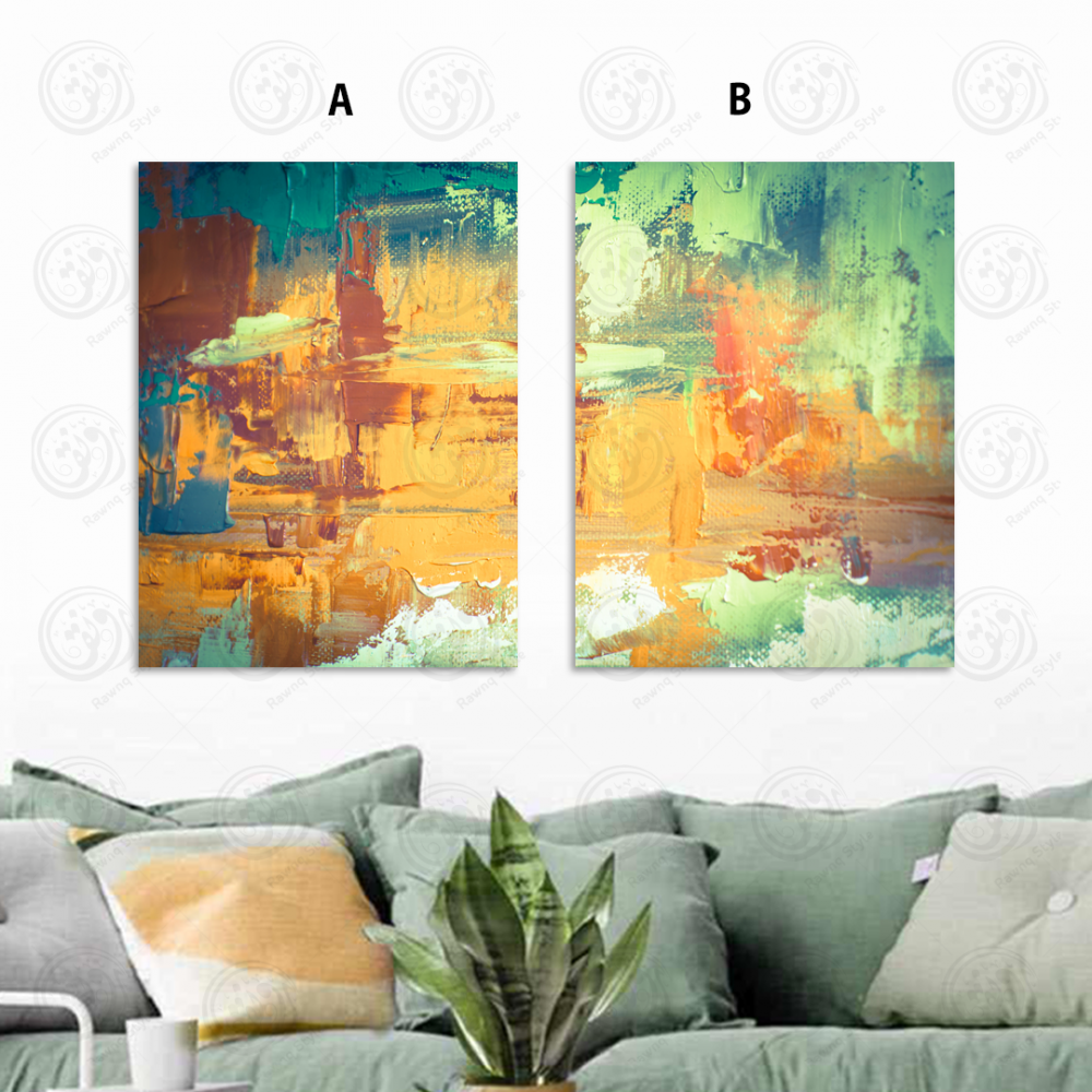 აბსტრაქტული ხელოვნების ნახატები ყვითელ, მწვანე, ლურჯ და ყავისფერში - E2PR-20382