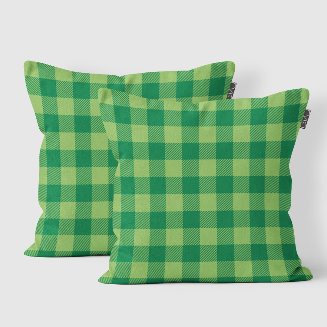 ევრო ბალიშის შამები - ტარტანის პლედი უნაკერო ნიმუშები - მწვანე ფერებში - m10094
