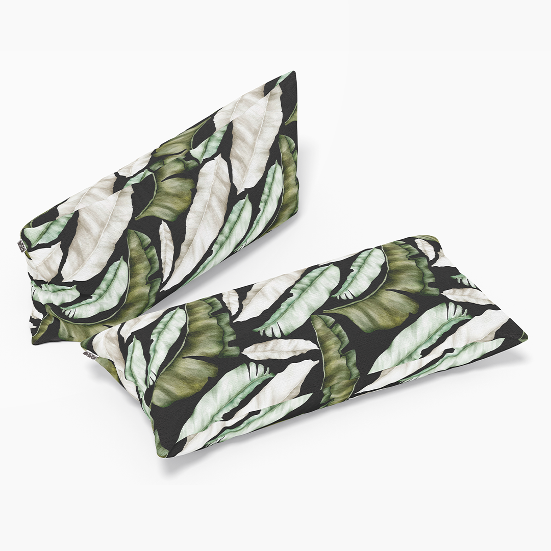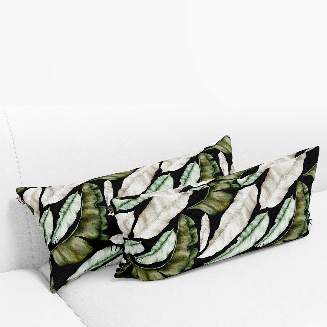 გრძელი წელის სასროლი ბალიშები - ელეგანტური უნაკერო ტროპიკული ფოთლების დიზაინი - მწვანე - თეთრი - M10117