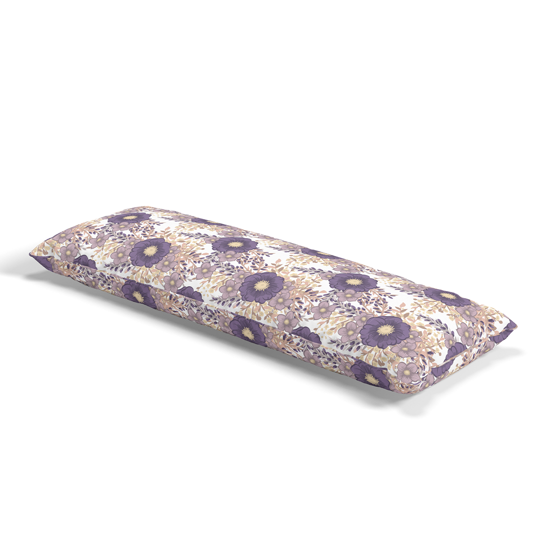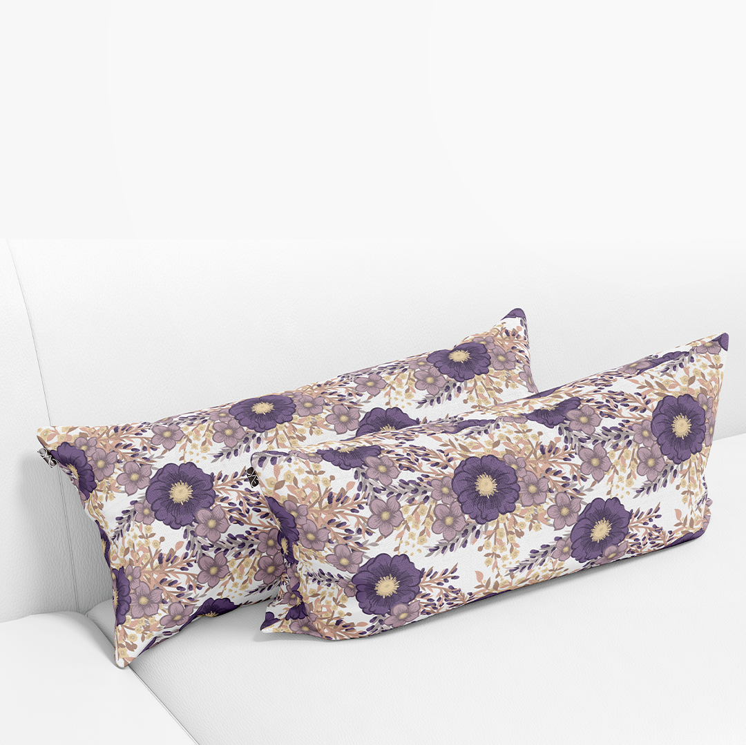 გრძელი წელის სასროლი ბალიშები - ყვავილების თაიგული უნაკერო ნიმუშით - ნაცრისფერი იასამნისფერი - ვარდისფერი თეთრი - თეთრი ფონი - m10081