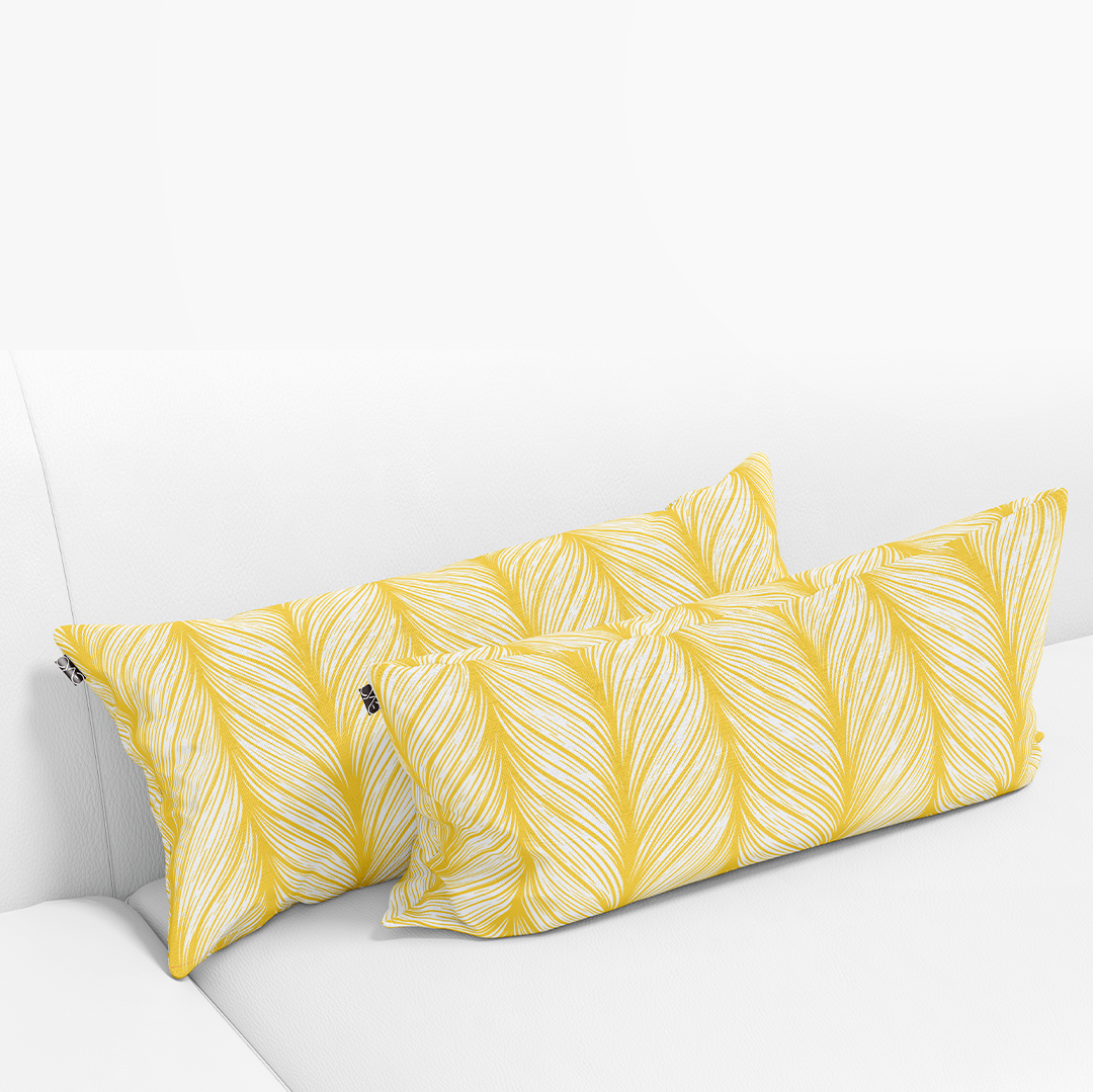გრძელი წელის სასროლი ბალიშები - ხელით დახატული ნიმუში დეკორატიული ქსოვის ორნამენტით, სტილიზებული აბსტრაქტული ნეიტრალური უნივერსალური ტექსტურით - ყვითელი რუჯი - M10132