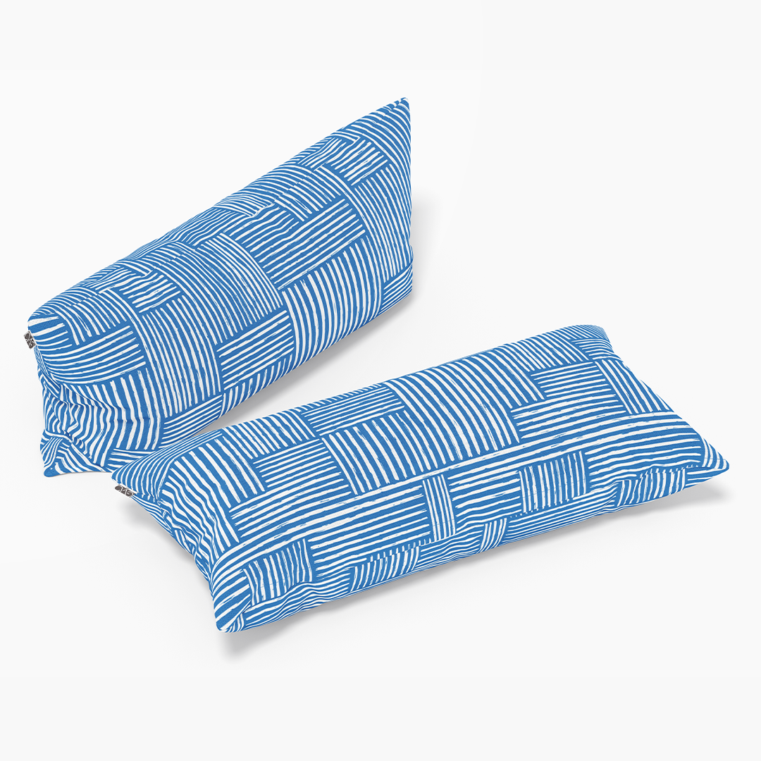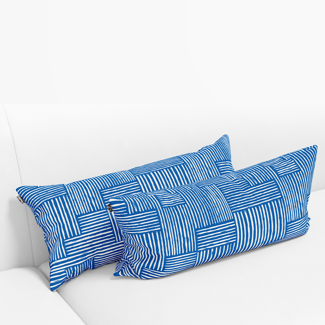 გრძელი წელის სასროლი ბალიშები - მინიმალური ელეგანტური ხაზის ფუნჯის შტრიხების ფორმები და ხაზი შიშველ ფერებში ლურჯი და თეთრი -m10023