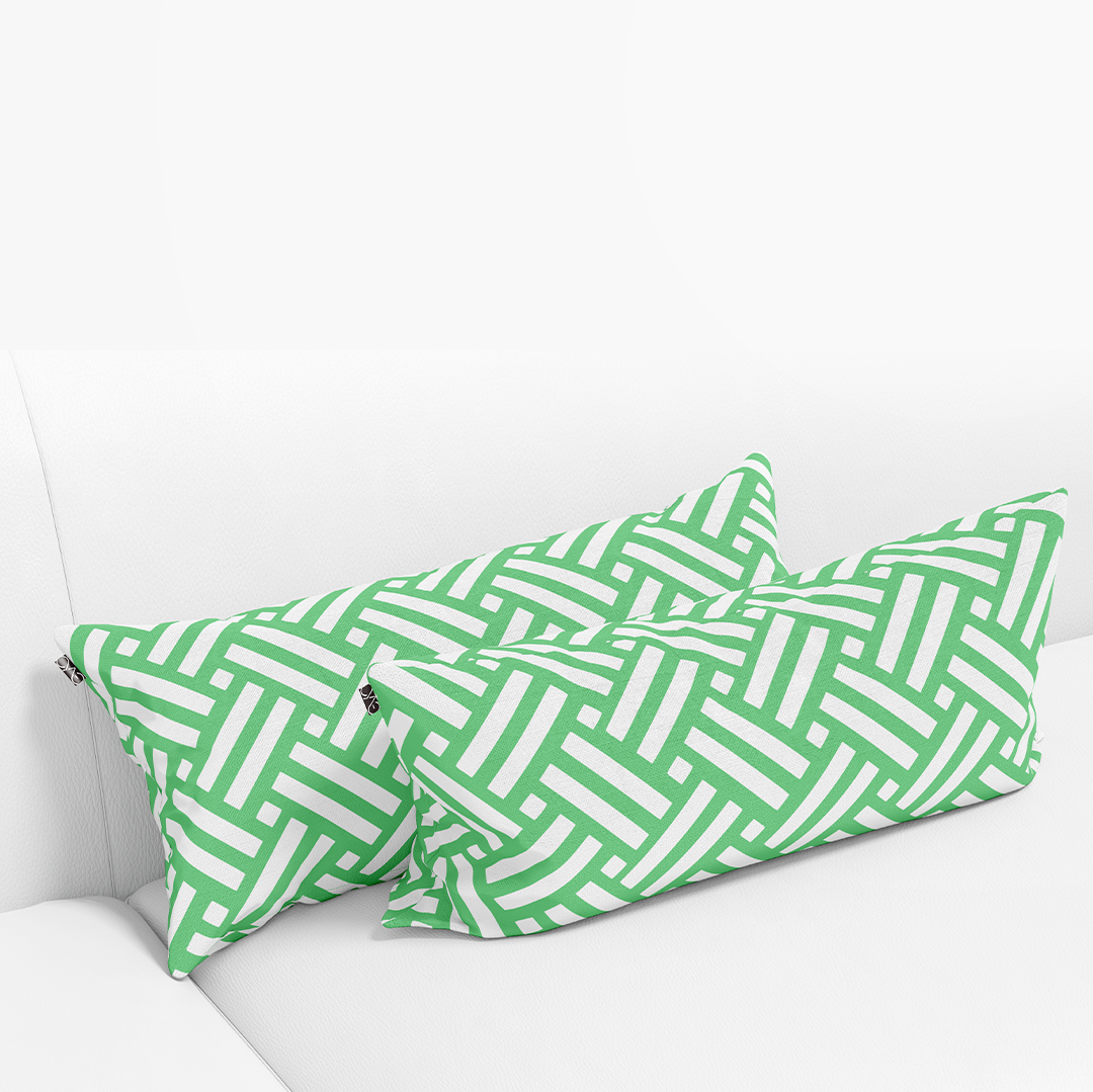 გრძელი წელის სასროლი ბალიშები - მინიმალური ელეგანტური ხაზის ფუნჯის შტრიხების ფორმები და ხაზი შიშველ ფერებში მწვანე და თეთრი -m10025