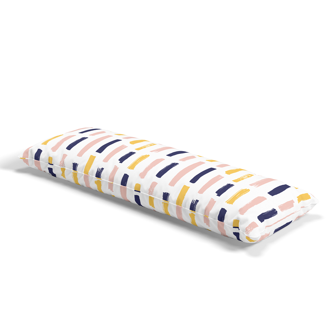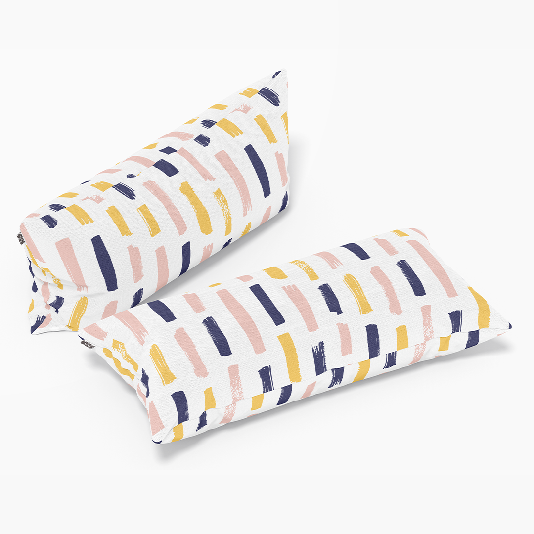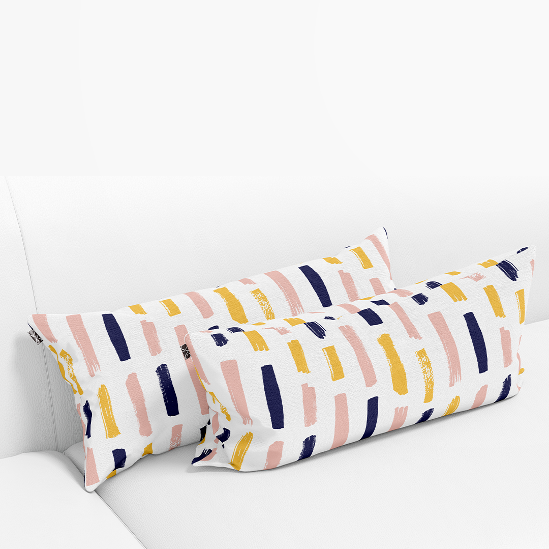გრძელი წელის სასროლი ბალიშები - თანამედროვე უნაკერო ნიმუში ყვითელი, ვარდისფერი, ლურჯი ფუნჯის შტრიხებით თეთრ ფონზე -m10055