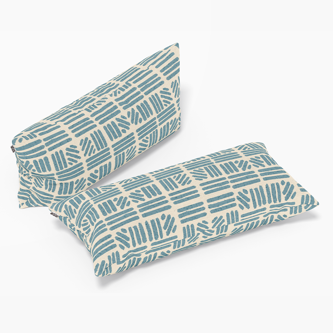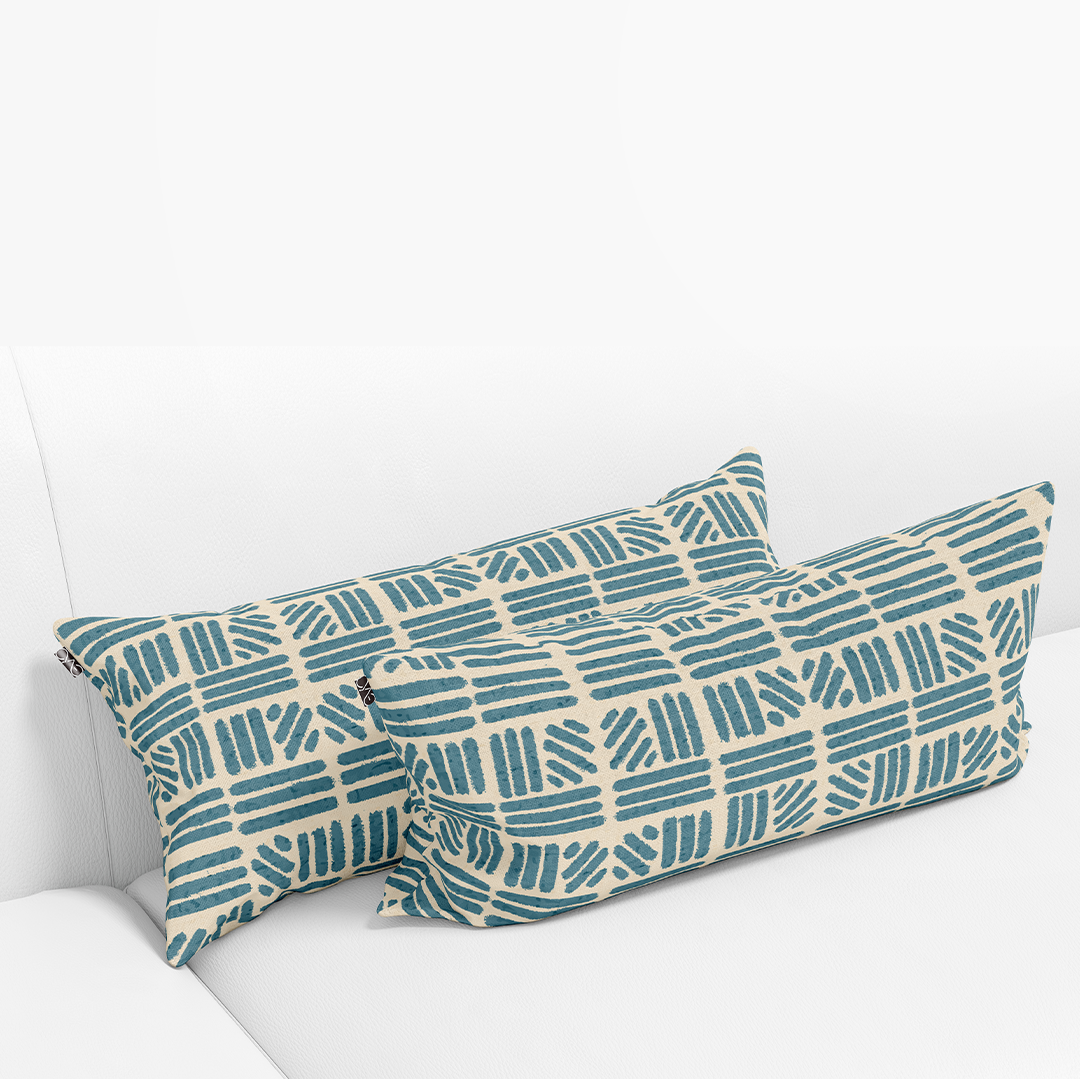 გრძელი წელის სასროლი ბალიშები - უწყვეტი ნიმუშის ფონი ანტიკვარული თეთრი - ჰიპური ლურჯი -m10074