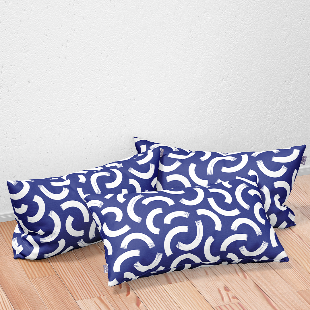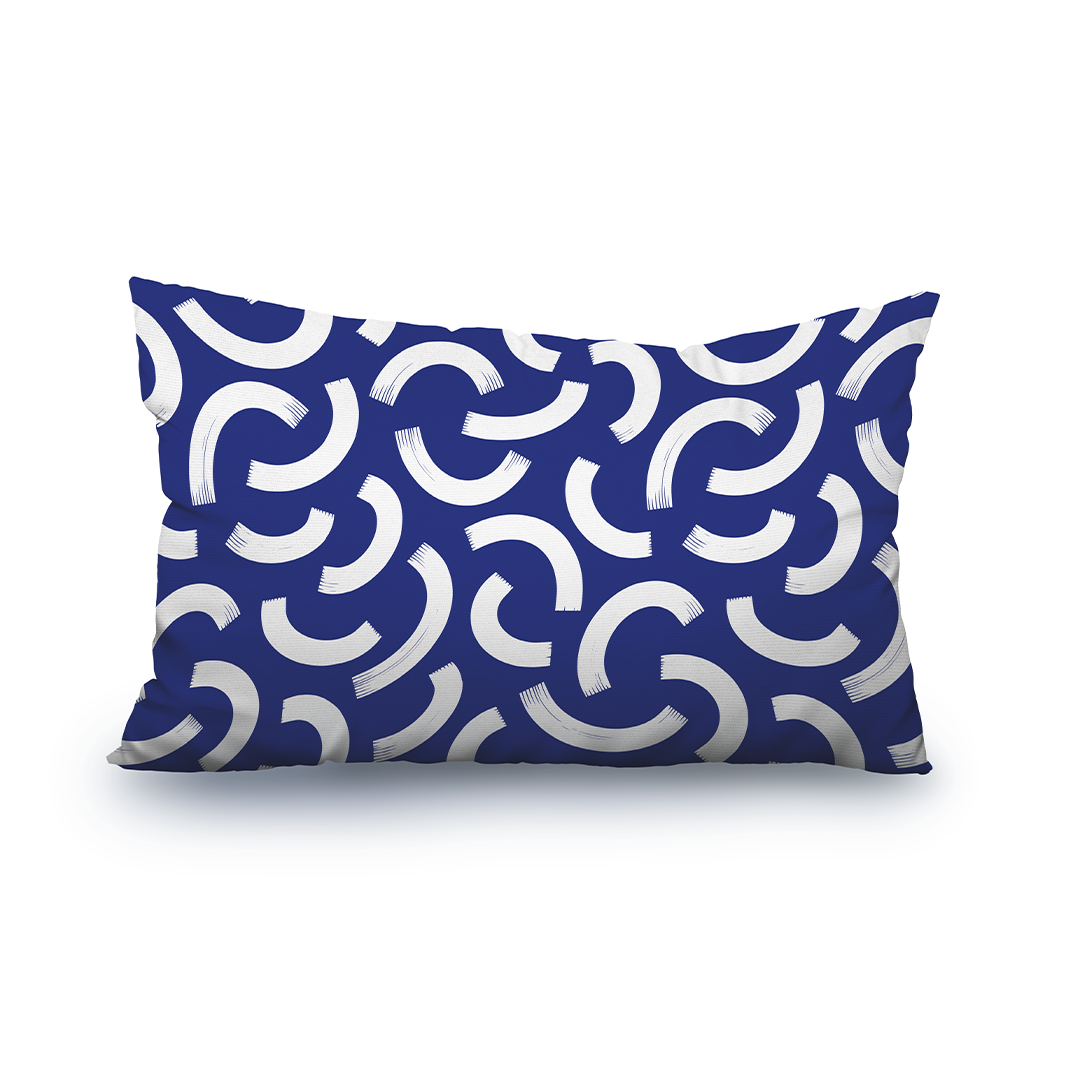 წელის სასროლი ბალიში - მინიმალური ელეგანტური ხაზის ფუნჯის შტრიხების ფორმები და ხაზი შიშველ ფერებში მუქი ლურჯი და თეთრი -m10016