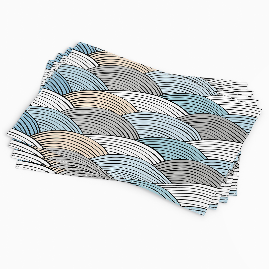 პლაცმენტები - უნაკერო ნიმუში დუდლის ორნამენტით - მოღრუბლული ლურჯი - თეთრი - კრემისფერი - M10118