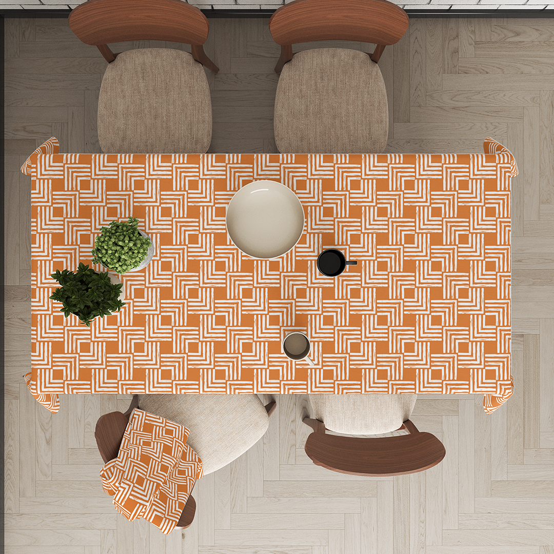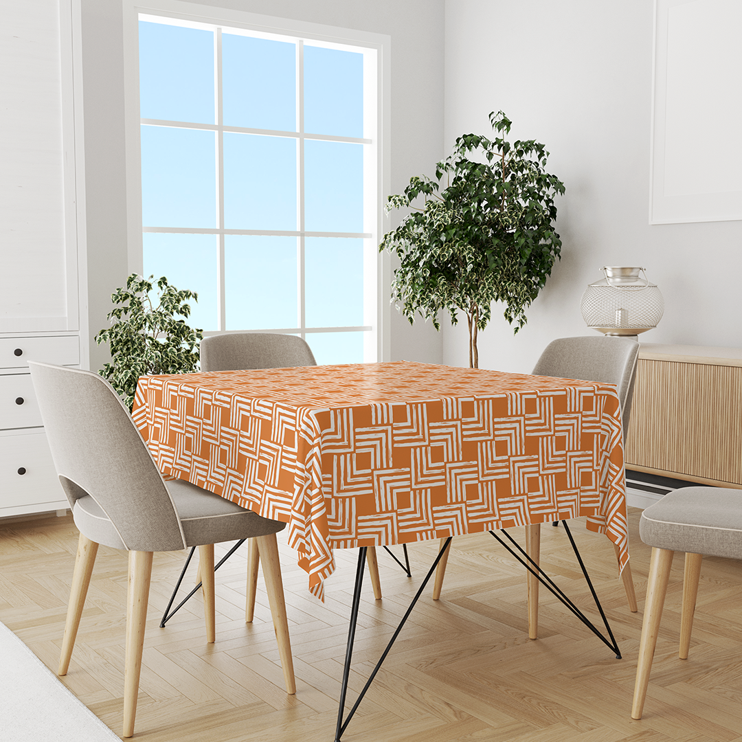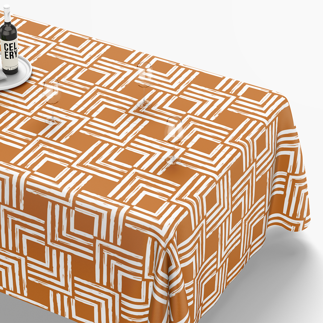 მართკუთხა სუფრის გადასაფარებლები - მინიმალური ელეგანტური ხაზის ფუნჯის შტრიხების ფორმები და ხაზი შიშველ ფერებში ნარინჯისფერ და თეთრში -m10024