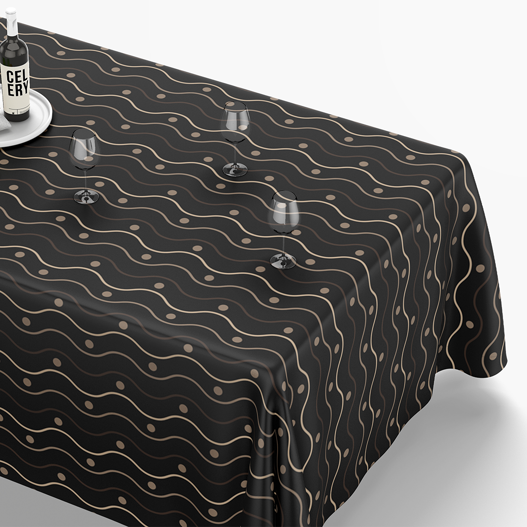 მართკუთხა სუფრის გადასაფარებლები - უწყვეტი გეომეტრიული ნიმუში კრემისფერი ხაზები და მუქი ფონი -m10053