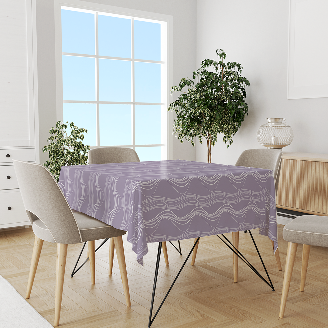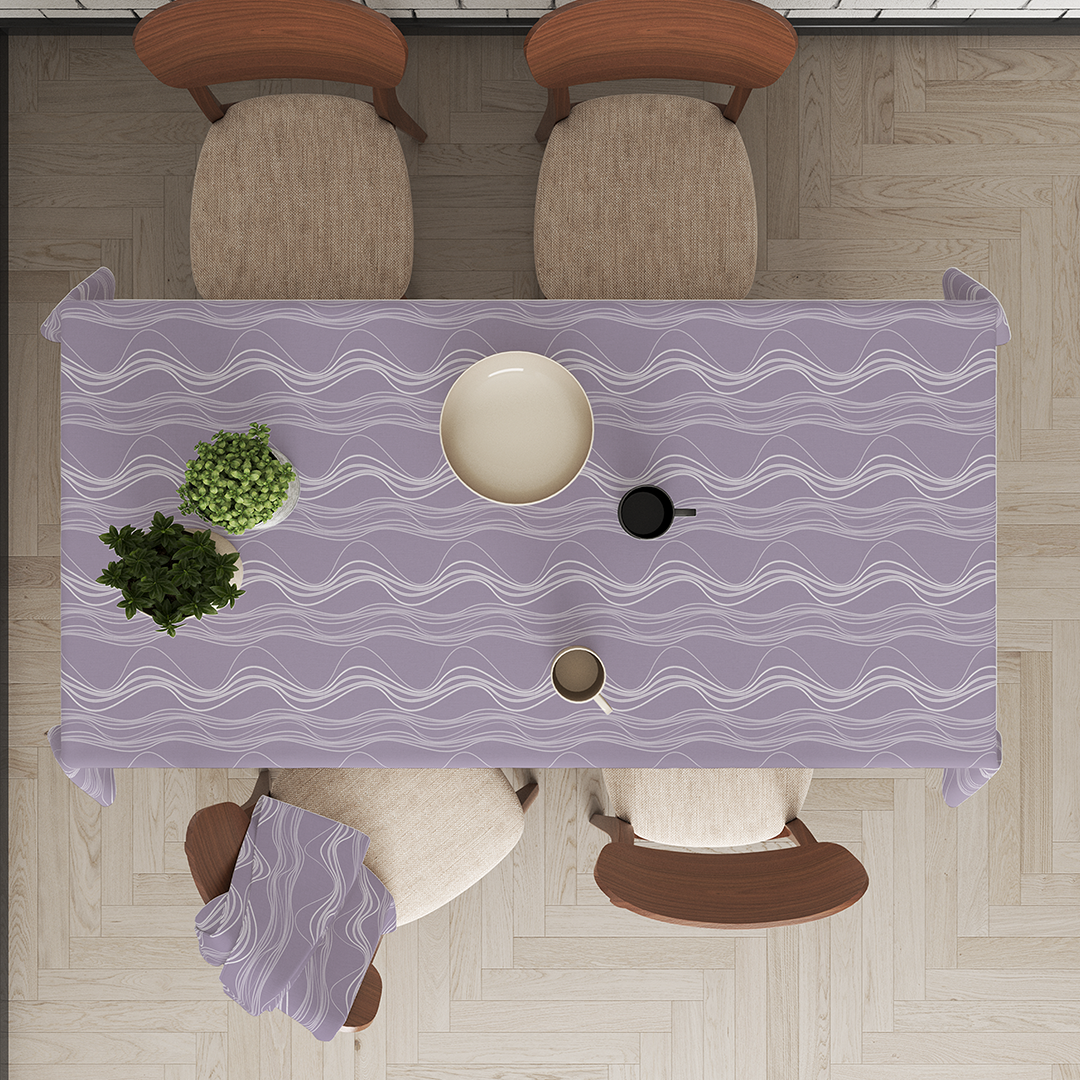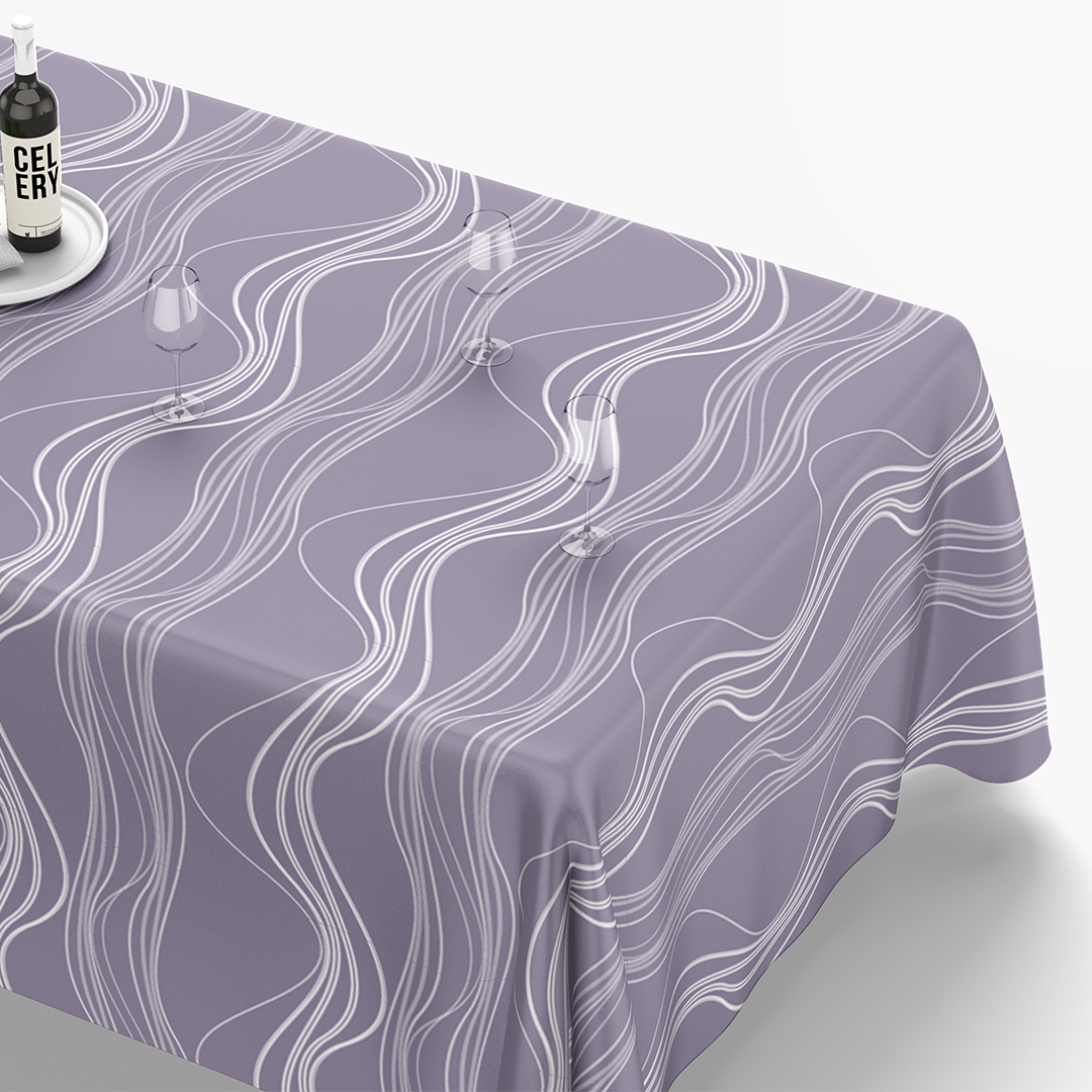 მართკუთხა სუფრის გადასაფარებლები - თეთრი მრუდი ხაზები აბსტრაქტული ნიმუშით, მეწამული უწყვეტი ვექტორული ფონი. -m10027