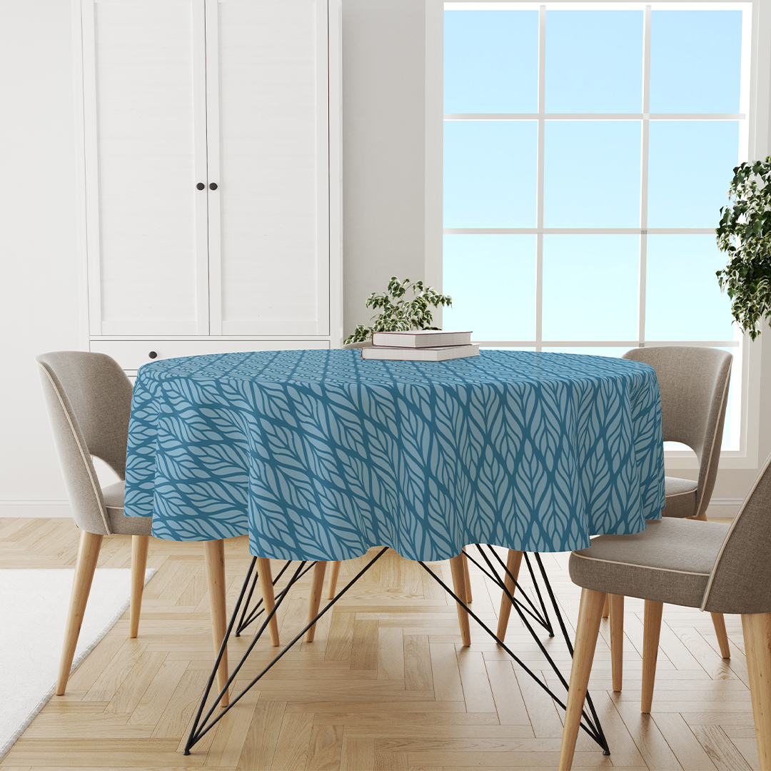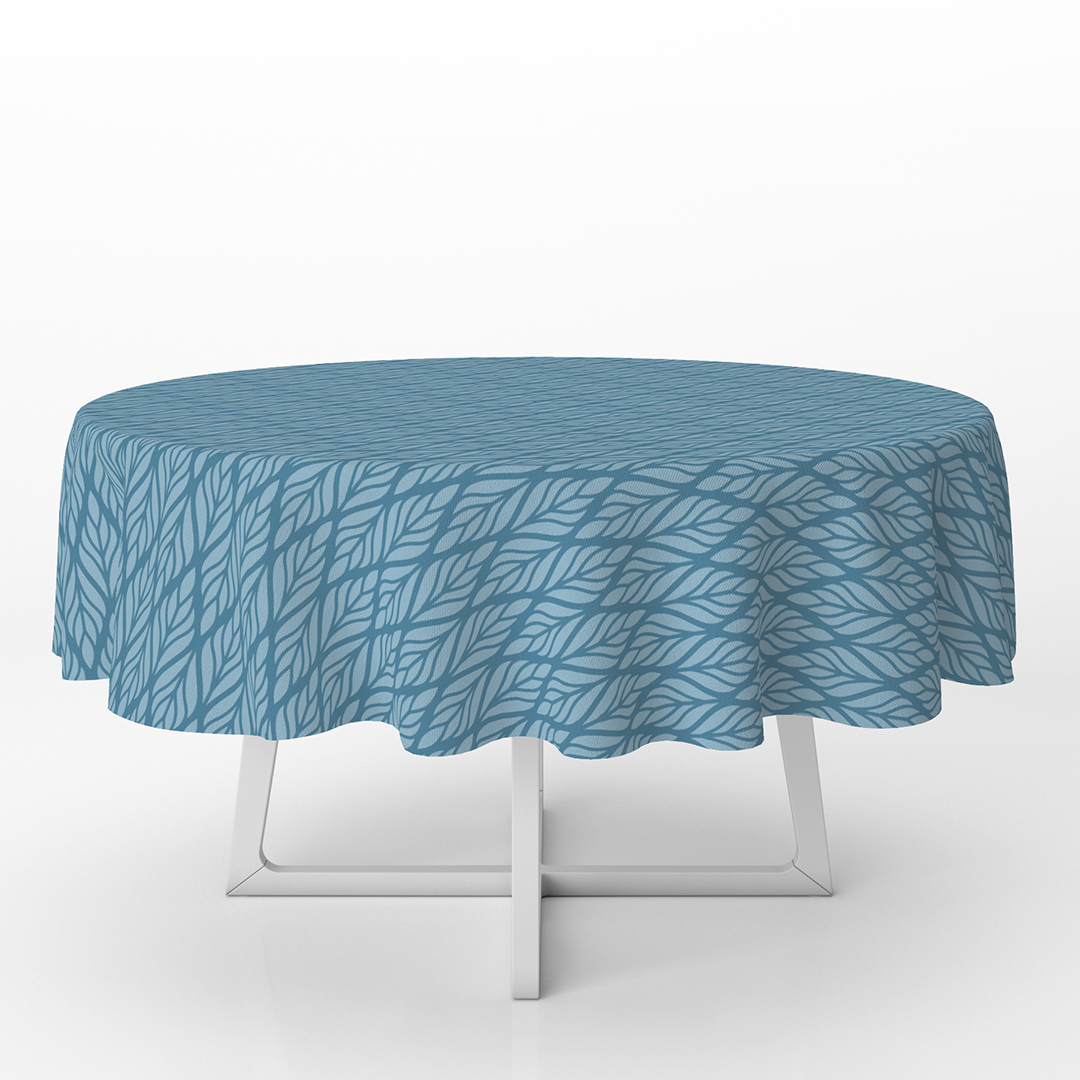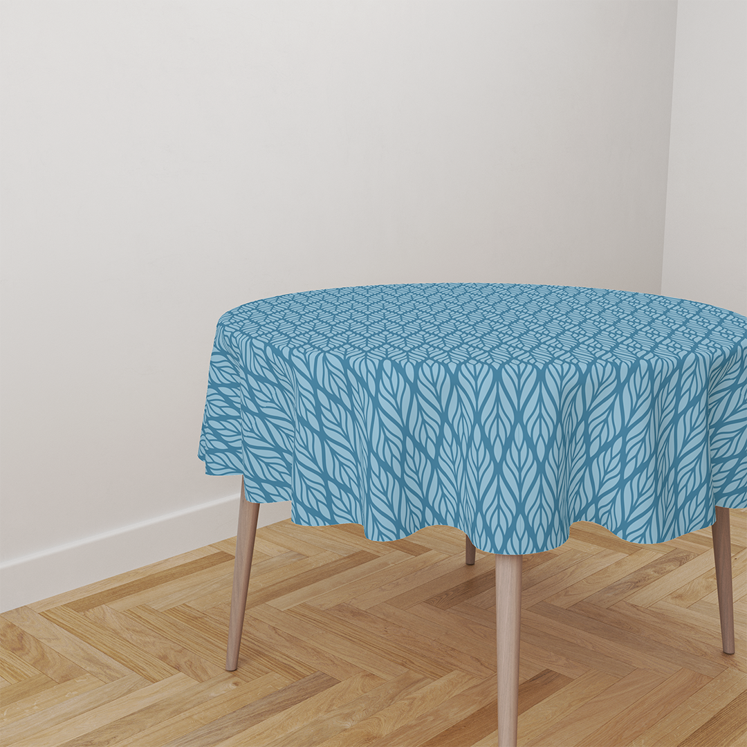 მრგვალი სუფრის ტილოები - ეთნიკური ყვავილოვანი უნაკერო ნიმუში. მოლურჯო ციანი - ლურჯი -m10070