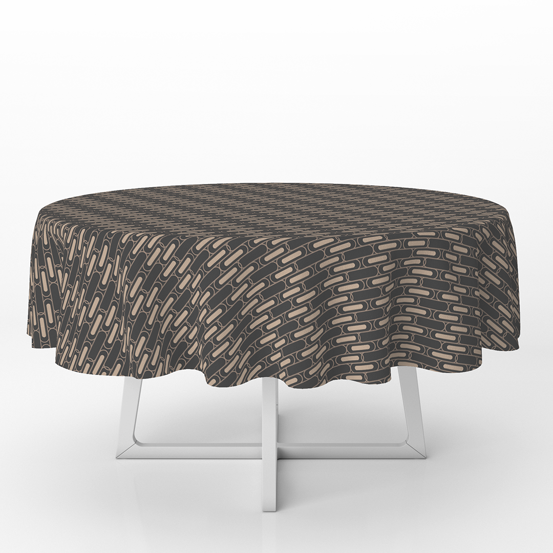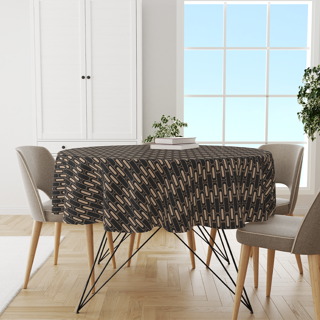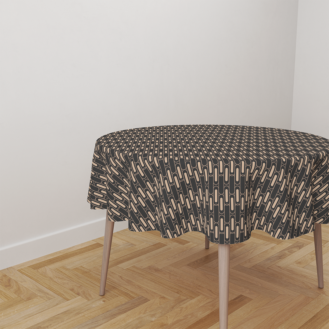 მრგვალი სუფრის გადასაფარებლები - უწყვეტი გეომეტრიული ნიმუში კრემისფერი ხაზები და მუქი ფონი -m10054