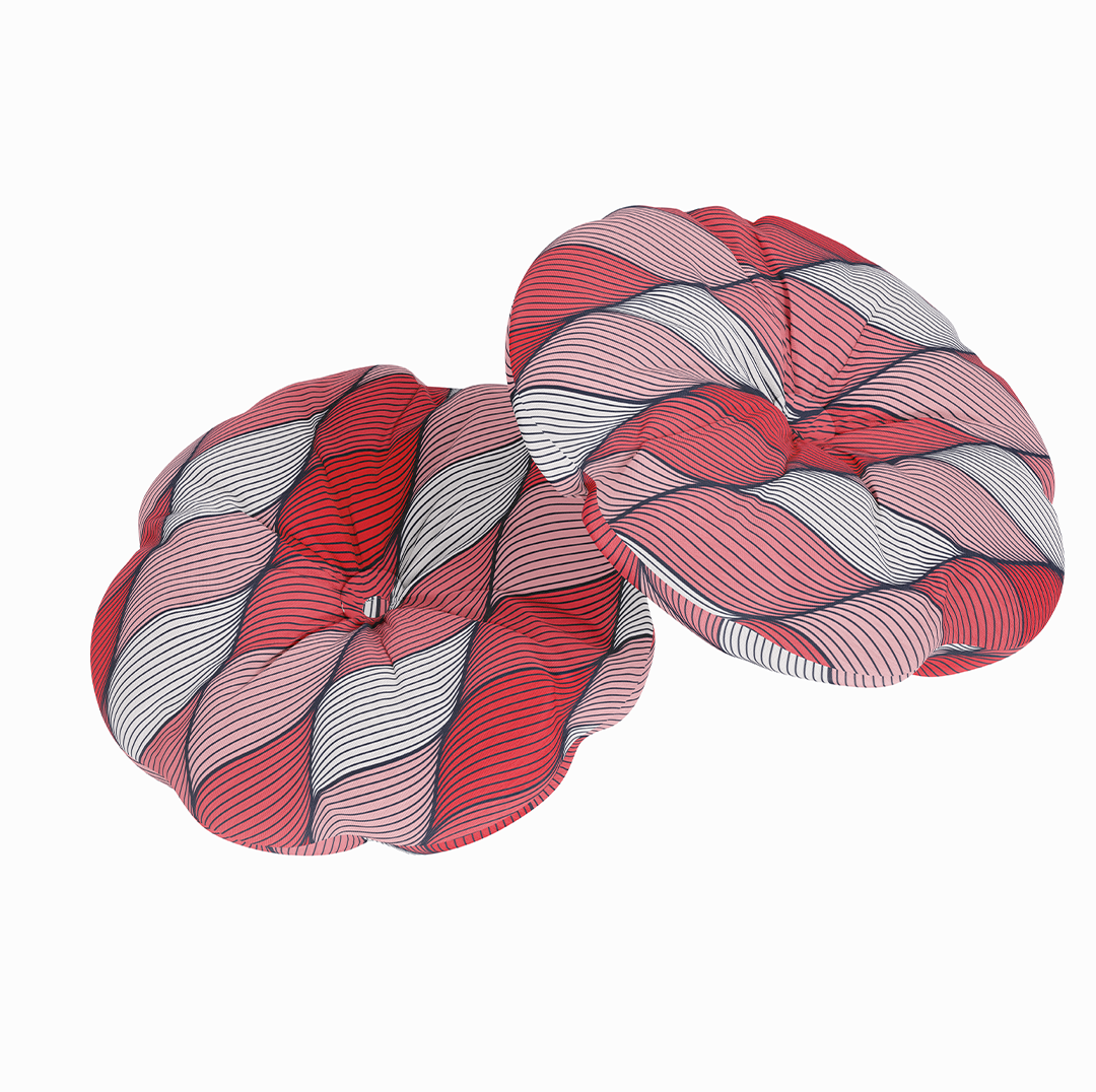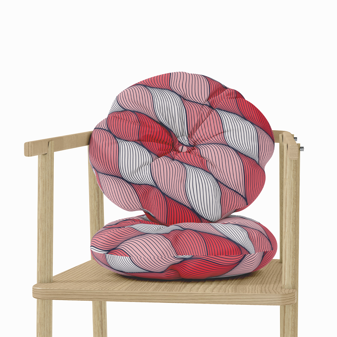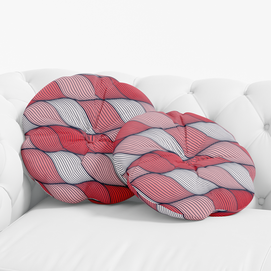 მრგვალი სასროლი ბალიში - აბსტრაქტული ტალღოვანი ხაზების უწყვეტი ნიმუშები - მყარი ვარდისფერი - ნაცრისფერი - M10127