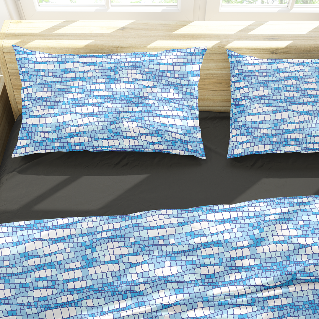 სტანდარტული ბალიშის შამები - აბსტრაქტული უნაკერო ნიმუში ლურჯი ტალღების ტექსტურირებული წყლის ზედაპირის დეკორატიული მოზაიკის დიზაინი - M10107