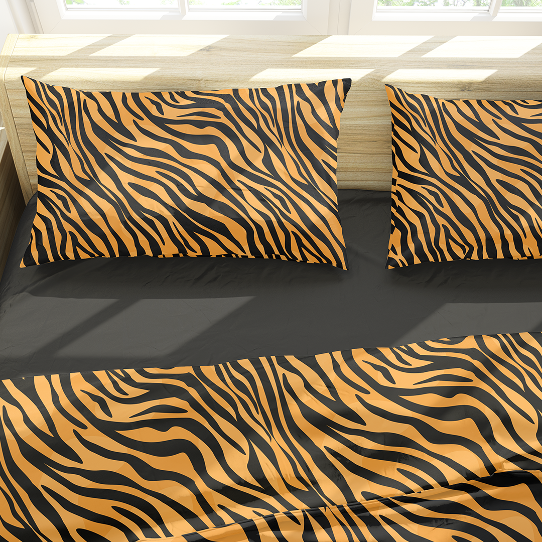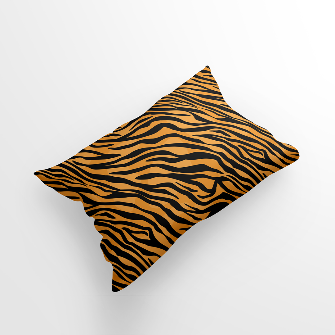 სტანდარტული ბალიშის შამები - ცხოველური ანაბეჭდები. ვეფხვისა და ლეოპარდის ნიმუშების კოლექცია სხვადასხვა ფერებში ბრტყელ სტილში. ნარინჯისფერი - შავი -m10057