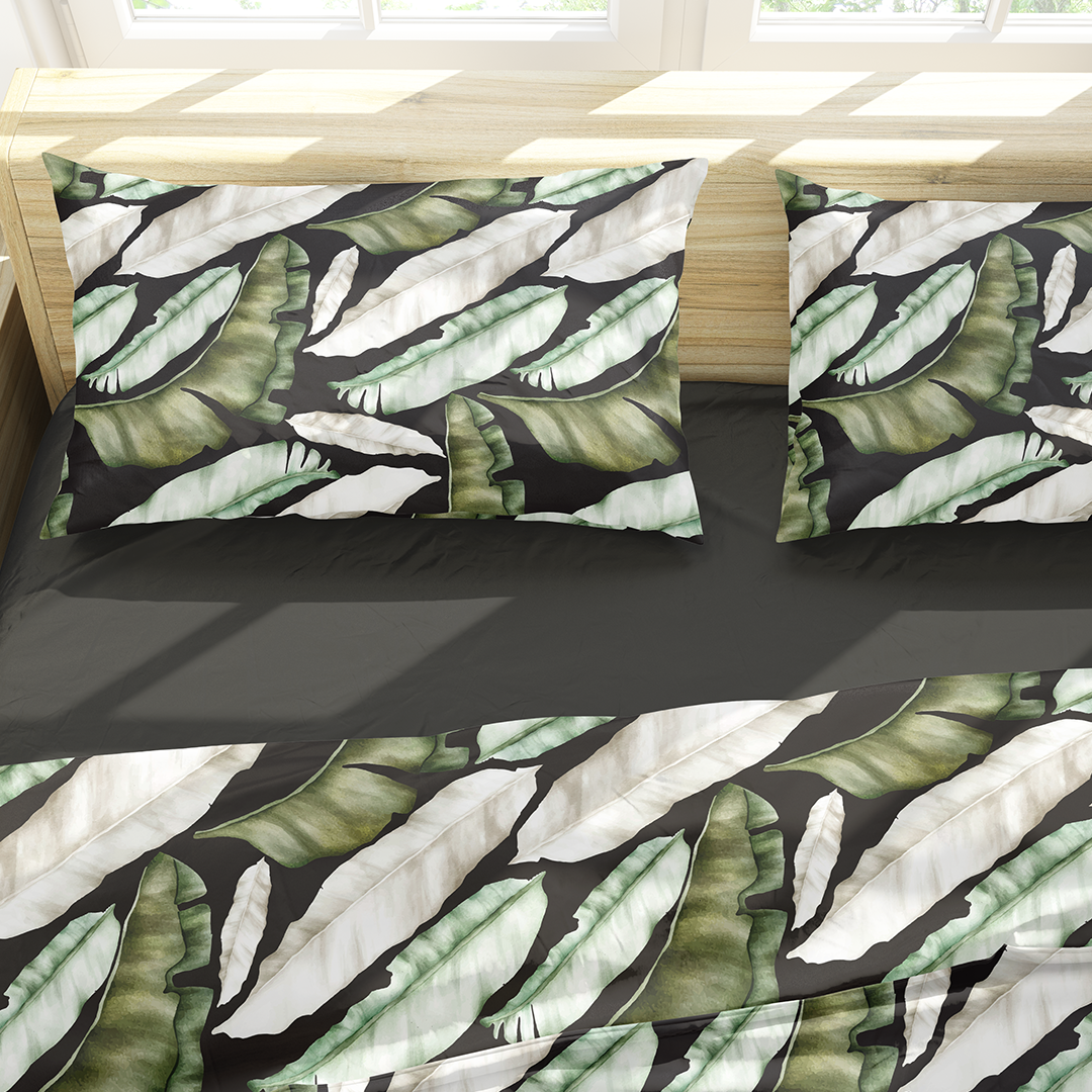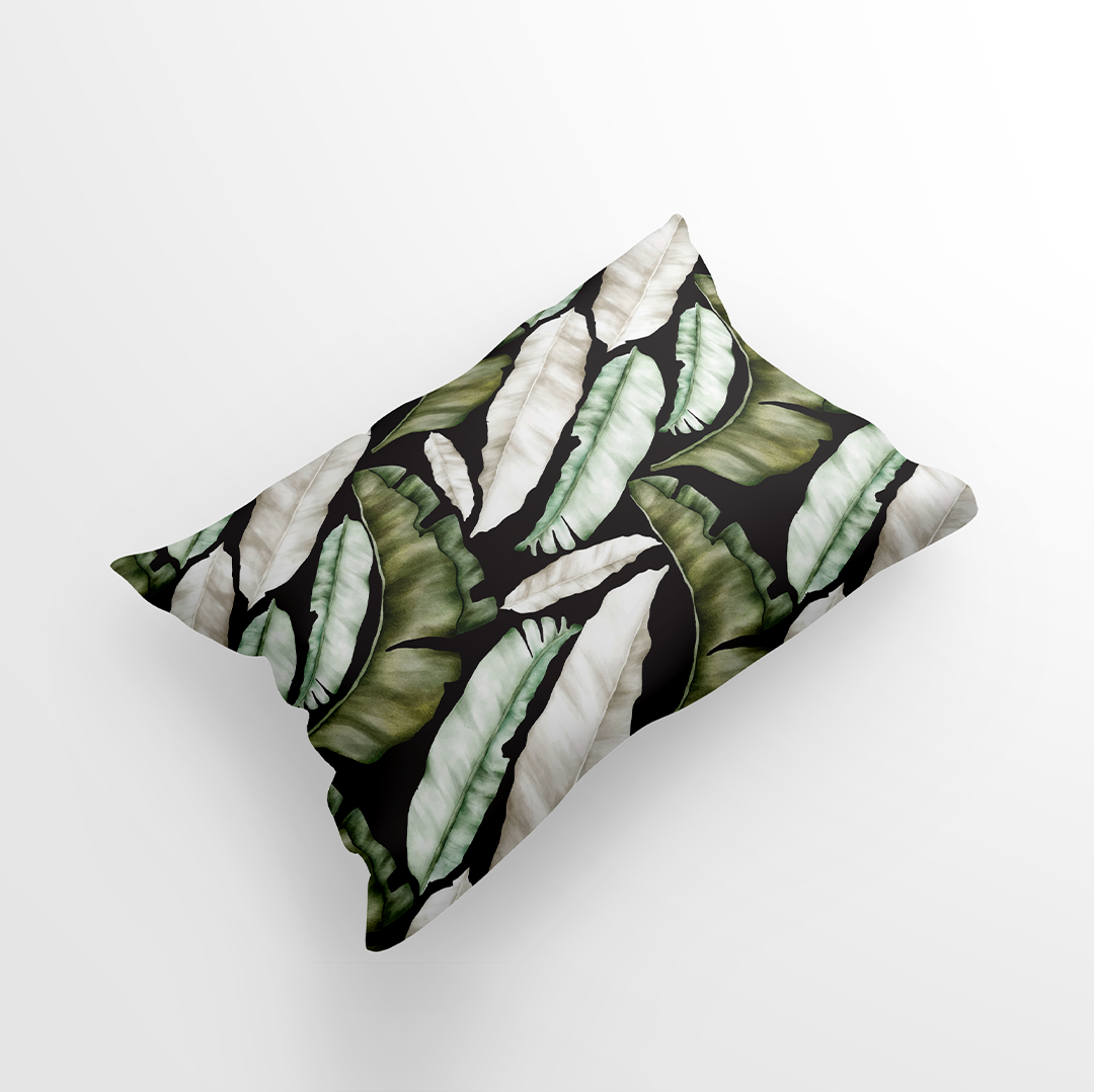სტანდარტული ბალიშის შამები - ელეგანტური უნაკერო ტროპიკული ფოთლების დიზაინი - მწვანე - თეთრი - M10117