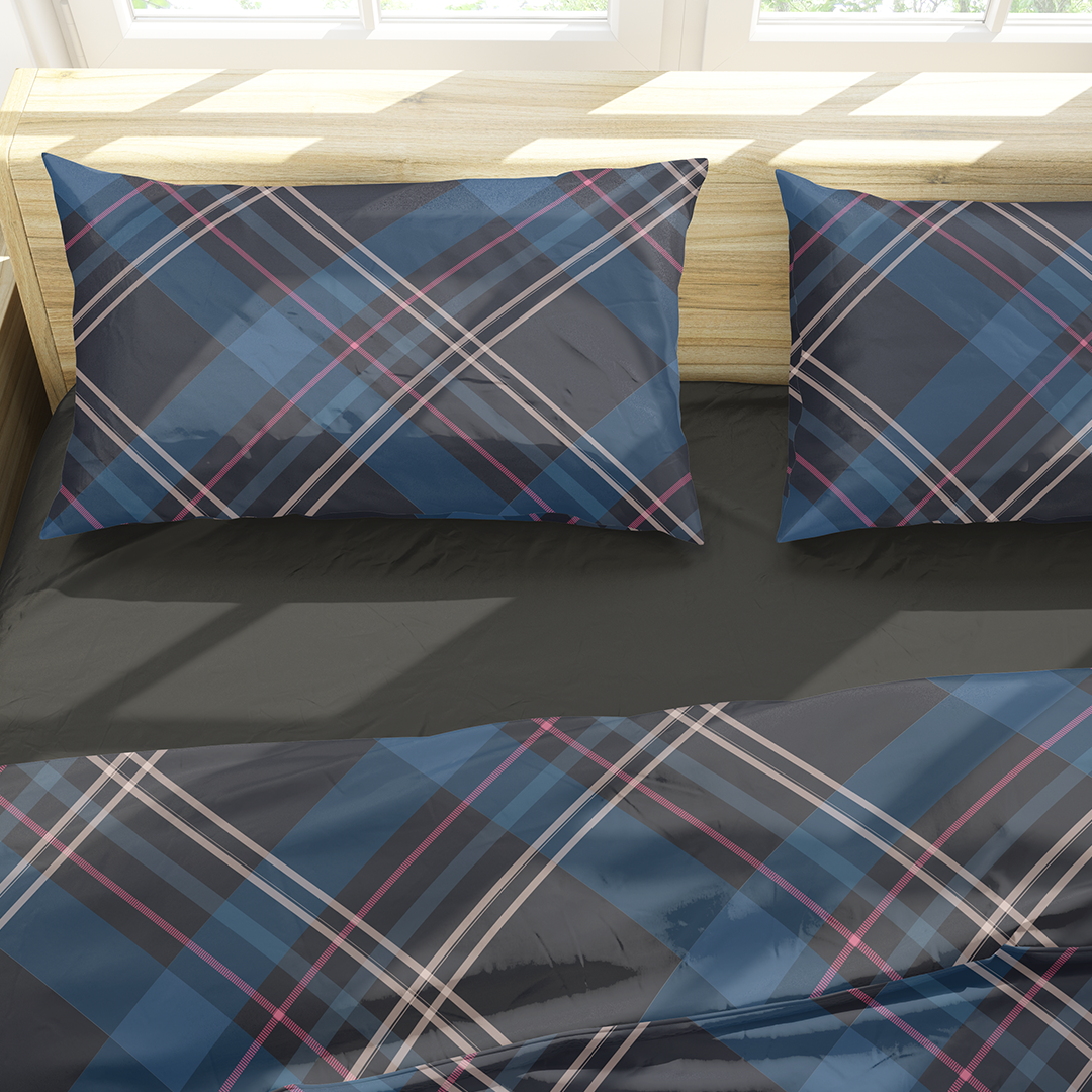 სტანდარტული ბალიშის შამები - საზღვაო ლურჯი ტარტანის უნაკერო ნიმუში - m10091