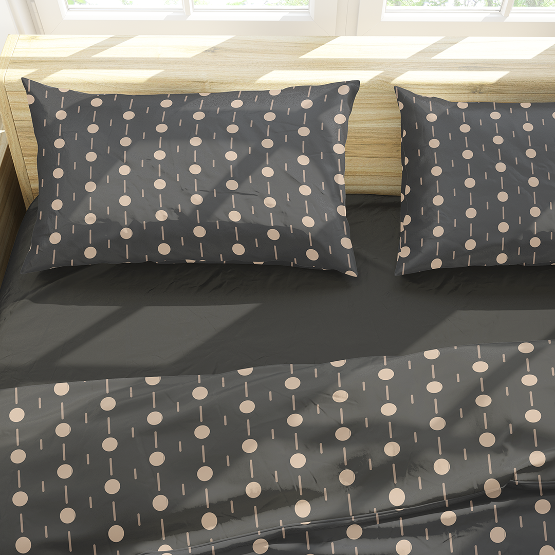 სტანდარტული ბალიშები - უნაკერო გეომეტრიული ნიმუში კრემისფერი ხაზები და მუქი ფონი -m10052