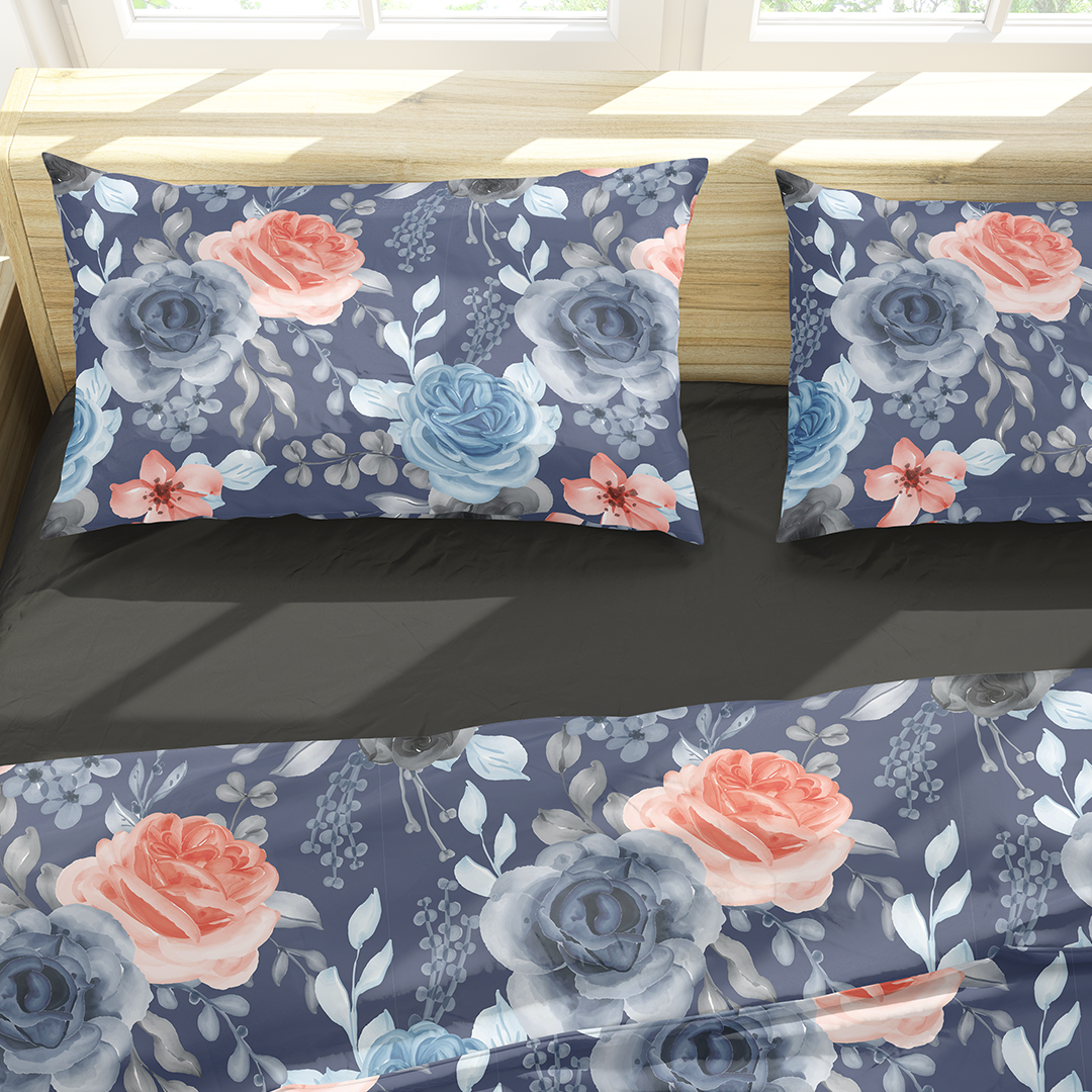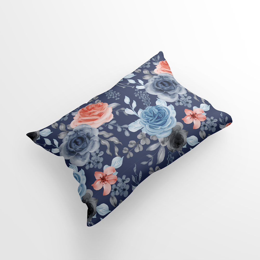 სტანდარტული ბალიშის შამები - აკვარელი ყვავილის ვარდი ნარინჯისფერი ლურჯი და ფოთლების უწყვეტი ნიმუში -m10075