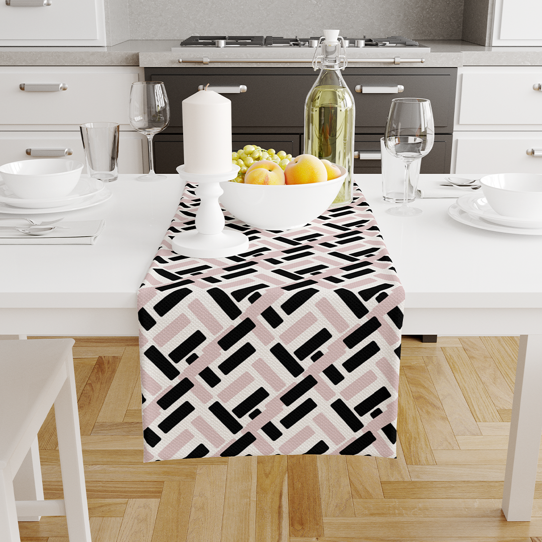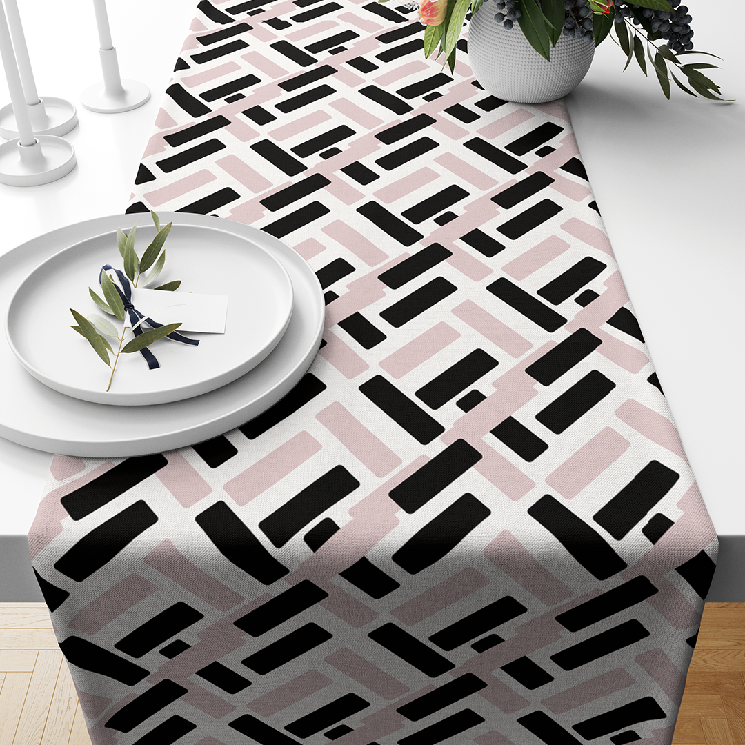 მაგიდის მორბენალი - აბსტრაქტული უწყვეტი ნიმუში თეთრი - შავი - ვარდისფერი -m10049