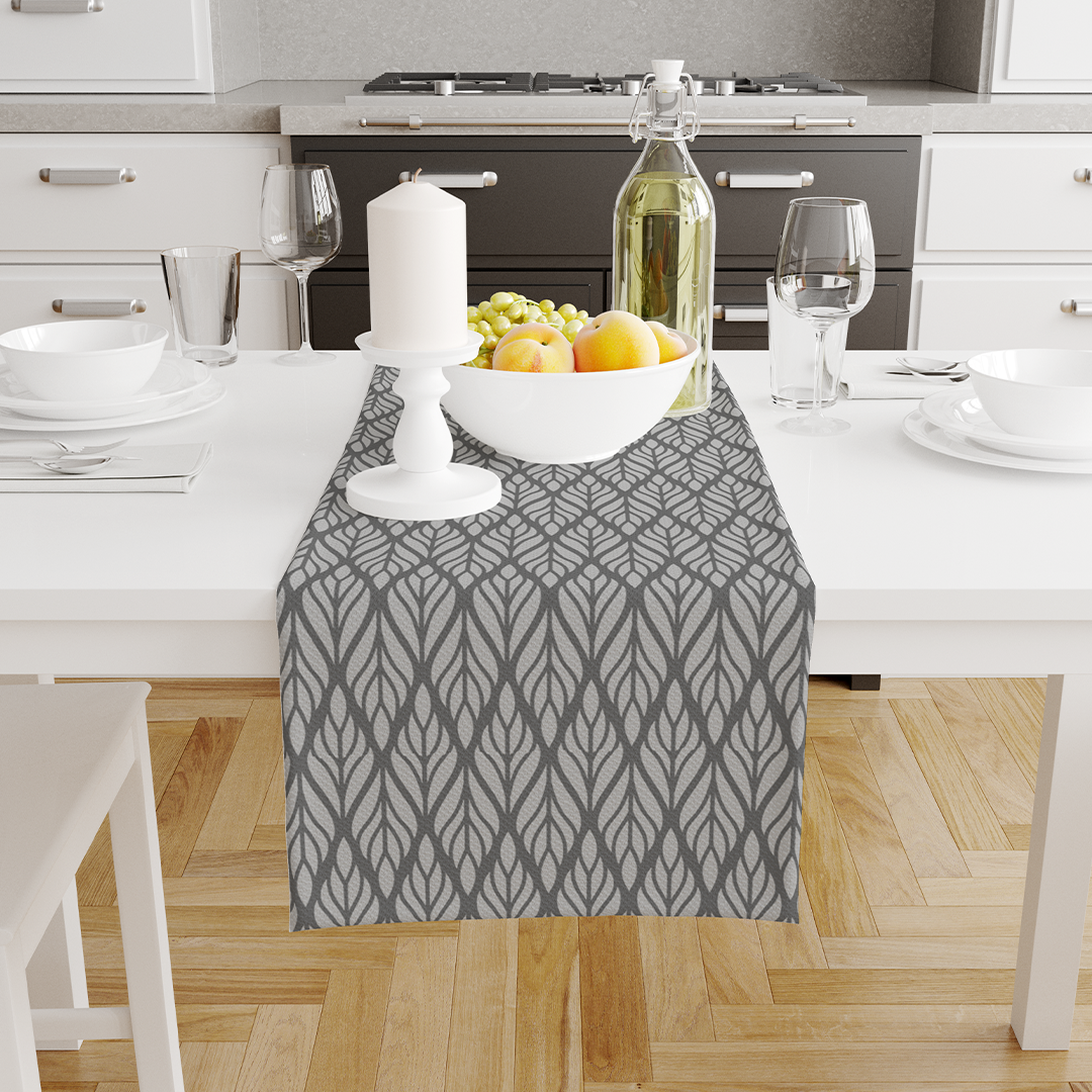 მაგიდის მორბენალი - ეთნიკური ყვავილოვანი უნაკერო ნიმუში. მოღრუბლული ნაცრისფერი -m10065