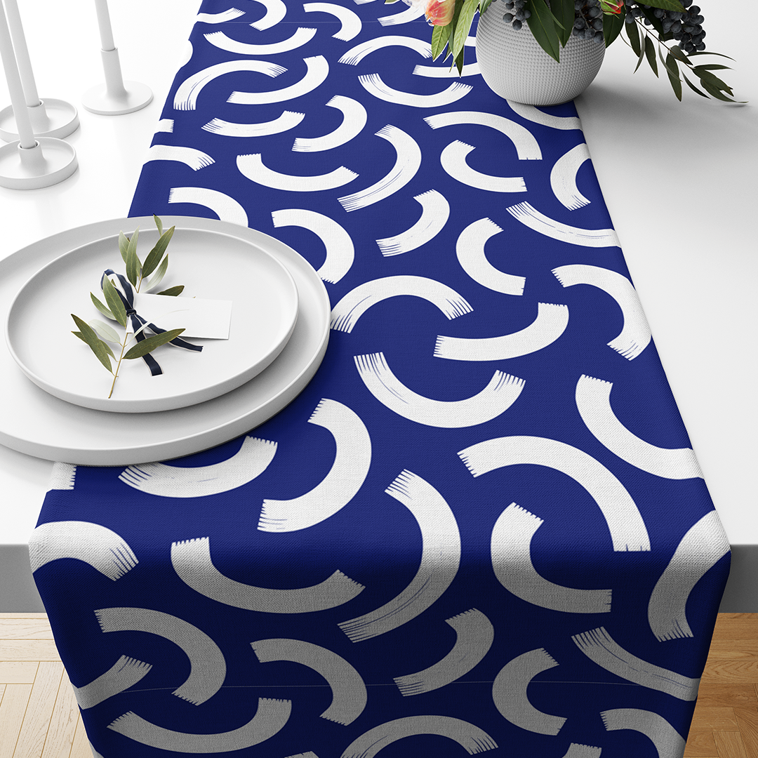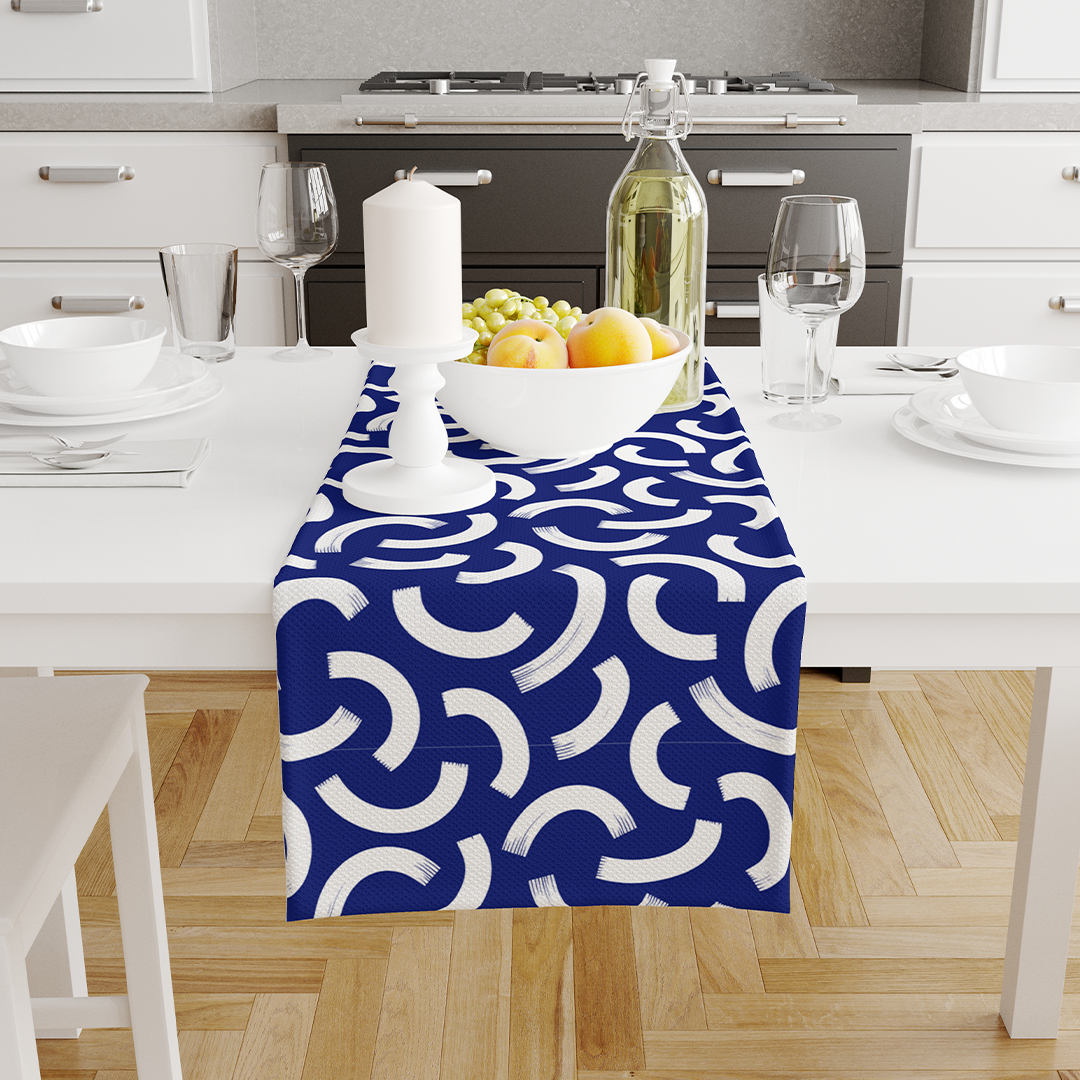 Table Runners - მინიმალური ელეგანტური ხაზის ფუნჯის შტრიხების ფორმები და ხაზი შიშველ ფერებში მუქი ლურჯი და თეთრი -m10016