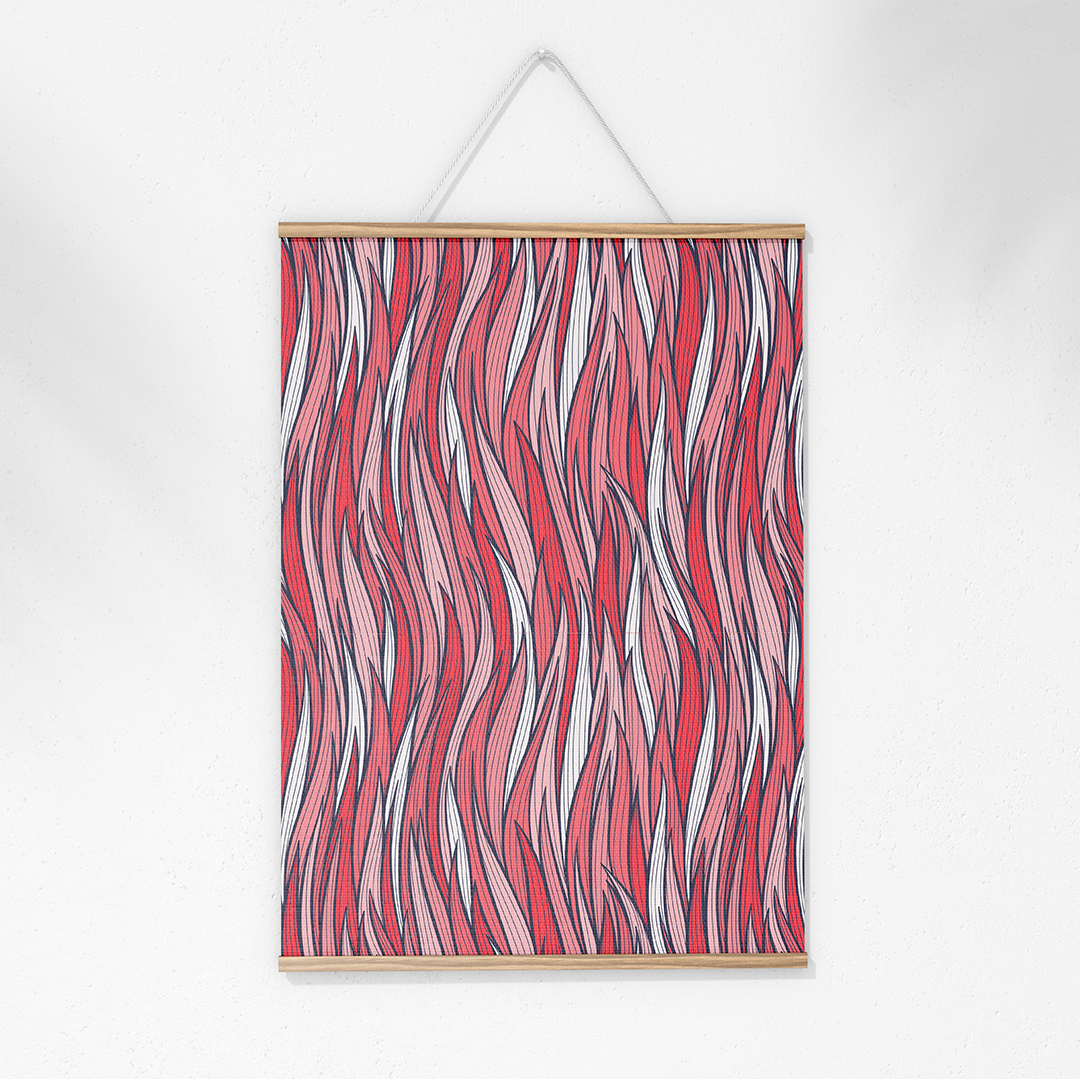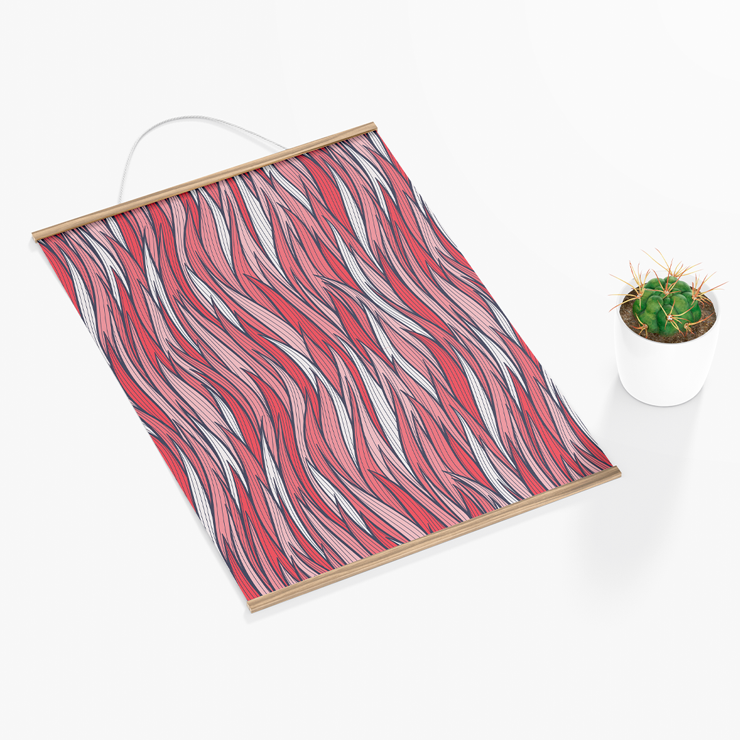კედელზე საკიდი - აბსტრაქტული ტალღოვანი ხაზების უწყვეტი ნიმუშები - მყარი ვარდისფერი - ნაცრისფერი - M10128