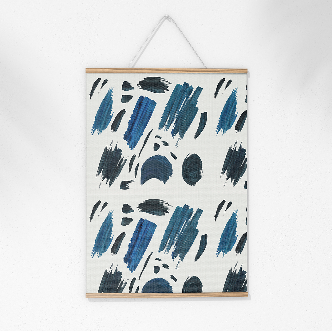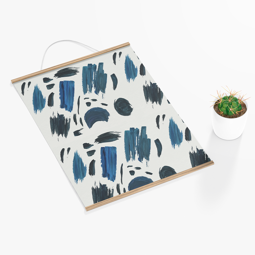 კედელზე ჩამოსაკიდი - ლურჯი აკრილის საღებავის ფუნჯი შრიფტის ფონზე - m10076