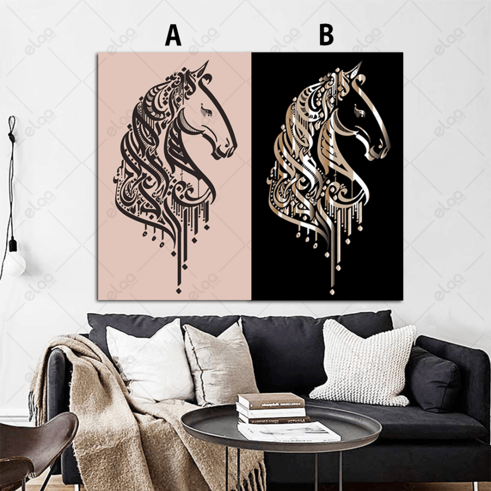 A painting of horses drawn with letters and Arabic letters - E2P0117