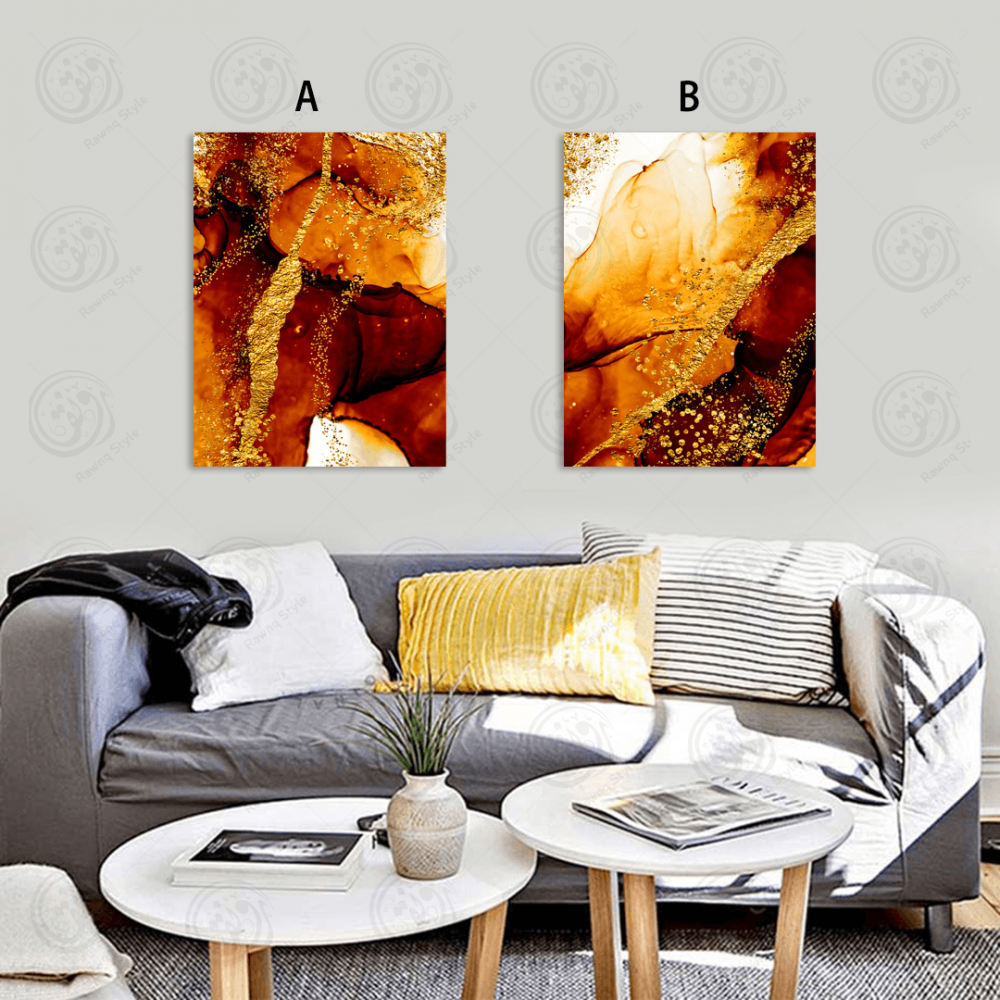 Abstract art paintings in golden and yellow tones - E2PR-20208