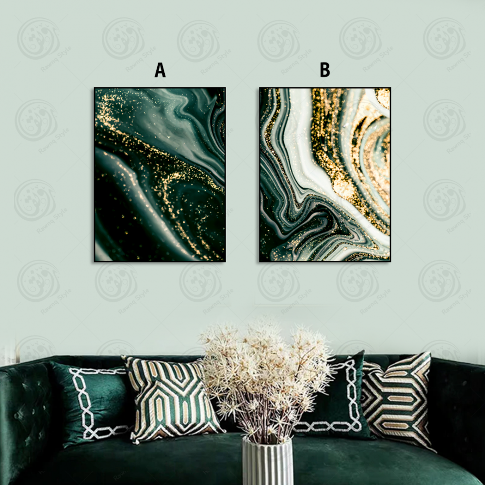Abstract art paintings in green and golden dust - E2PR-20273