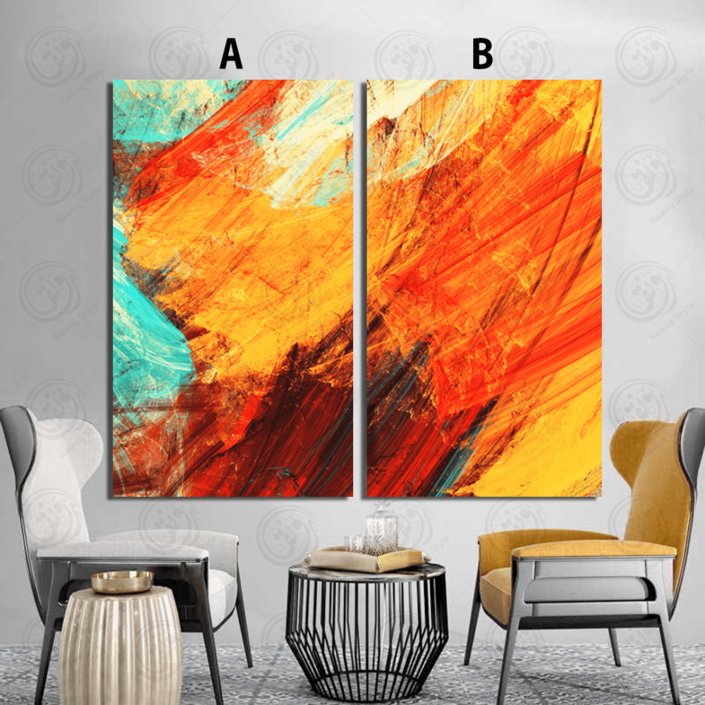 Abstract art paintings in orange, blue and black colors - E2PR-20001