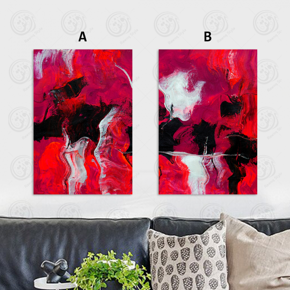 Abstract art paintings in red, black and white patterns - E2PR-20515