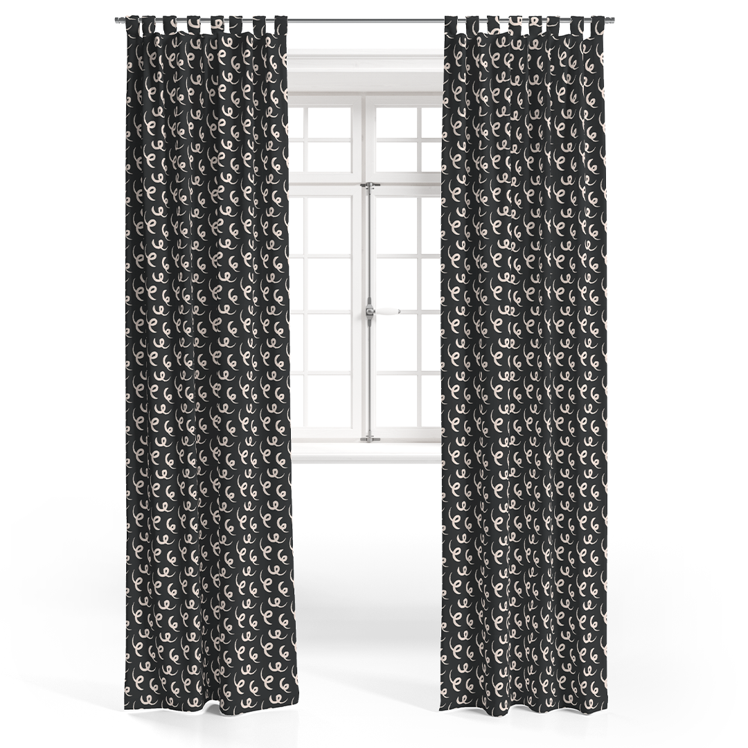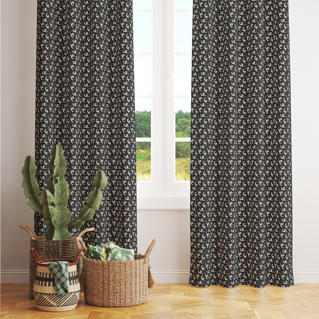 Curtain - Hand drawn style pattern - Antique White - Dark Brown - M10112