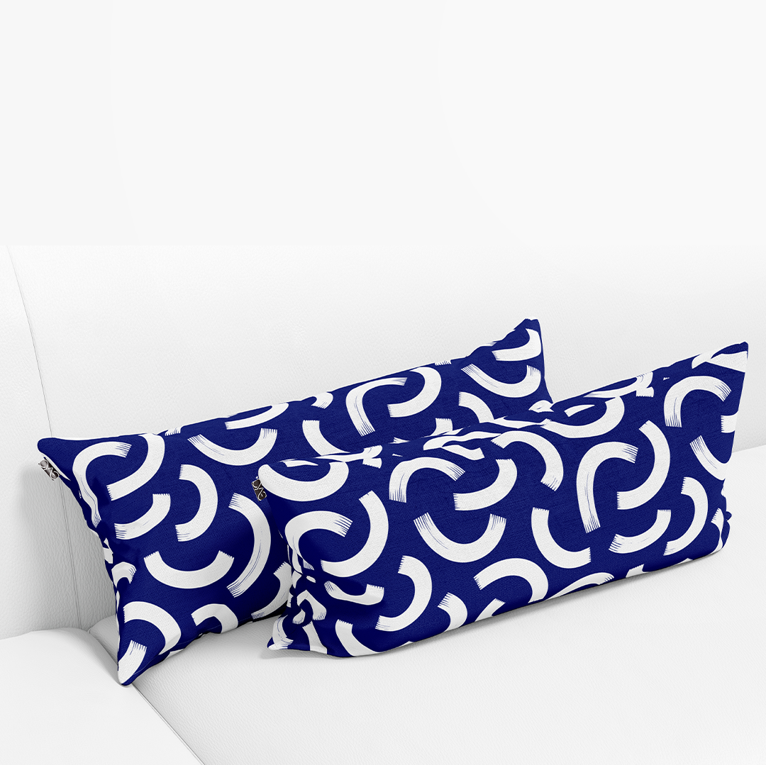 Long Lumbar Throw Pillows - Minimal elegant line brush stroke shapes and line in nude colors Dark Blue and white -m10016