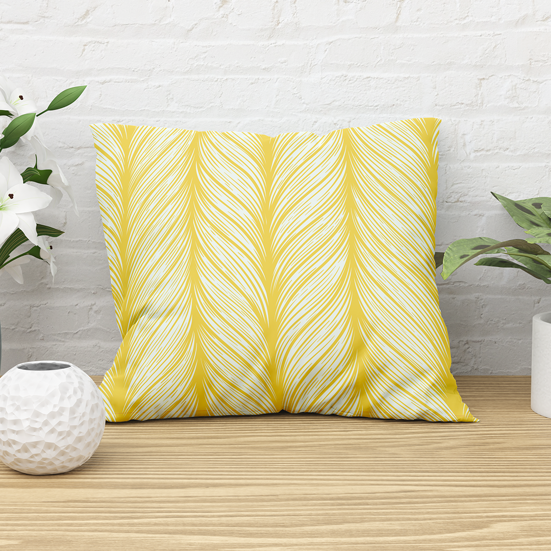 Square Throw Pillow - Hand drawn pattern with decorative weaving ornament stylized abstract neutral universal texture - Yellow Tan - M10132