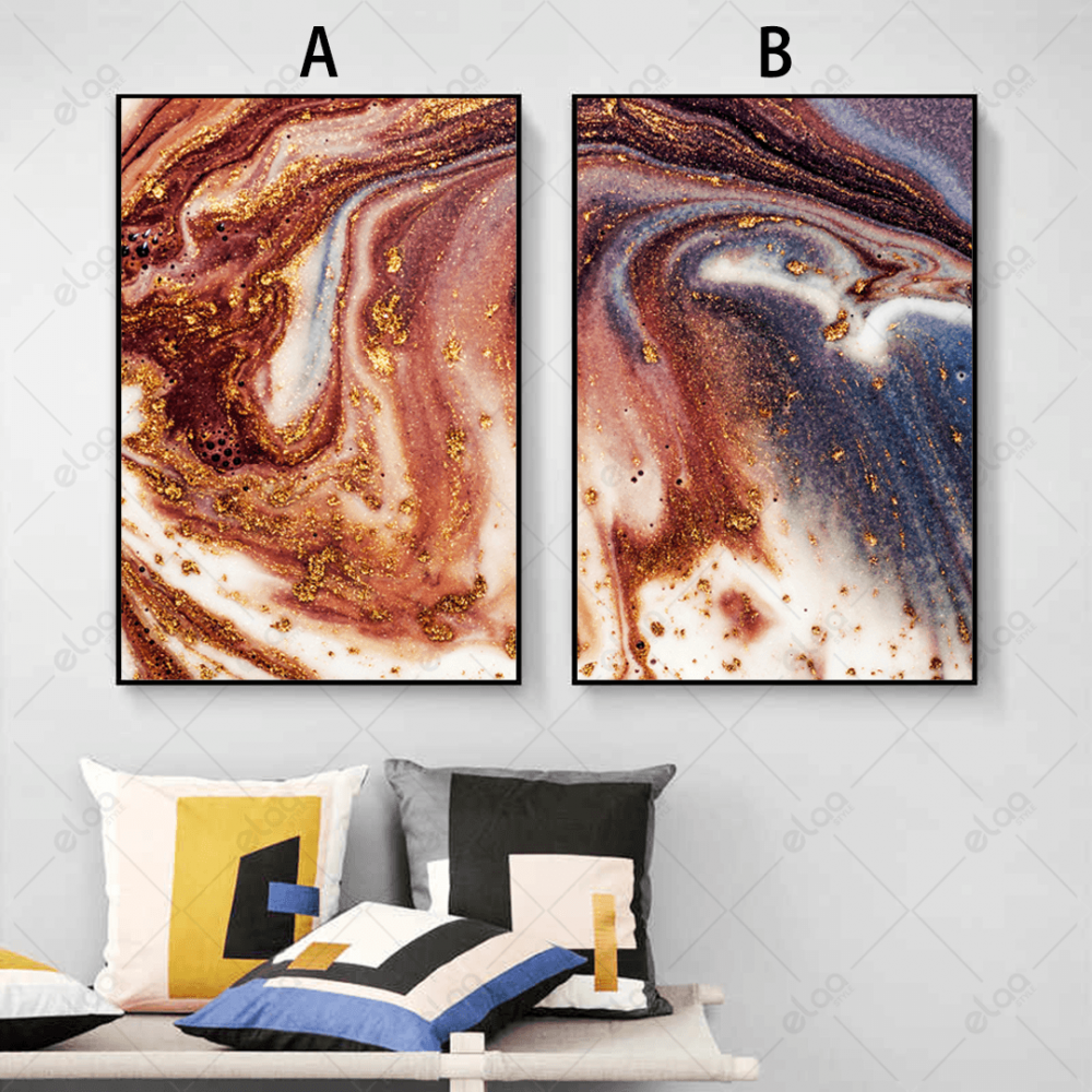 Swirl Abstract Art Brown and Gold Paintings - E2P1005
