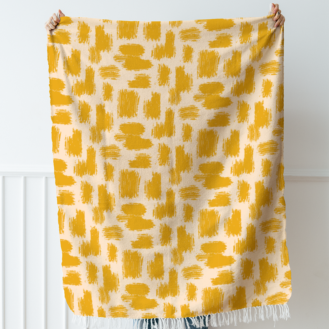 Throw Blanket - Various abstract brush strokes pattern yellow & beige background -m10039