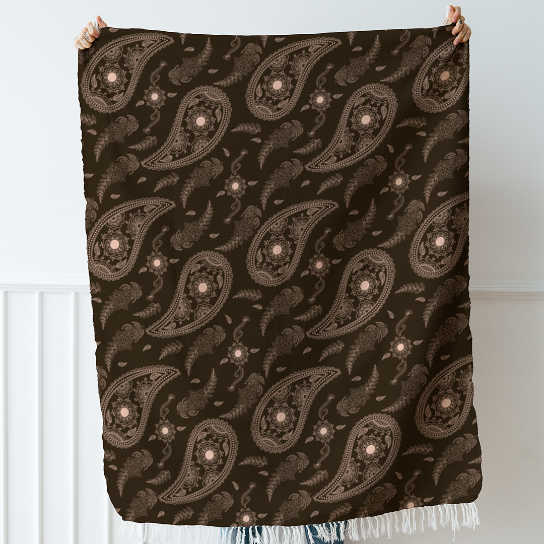Throw Blanket - Vector flower seamless pattern element. With mehndi and paisley elements. Biege - Brown -m10062