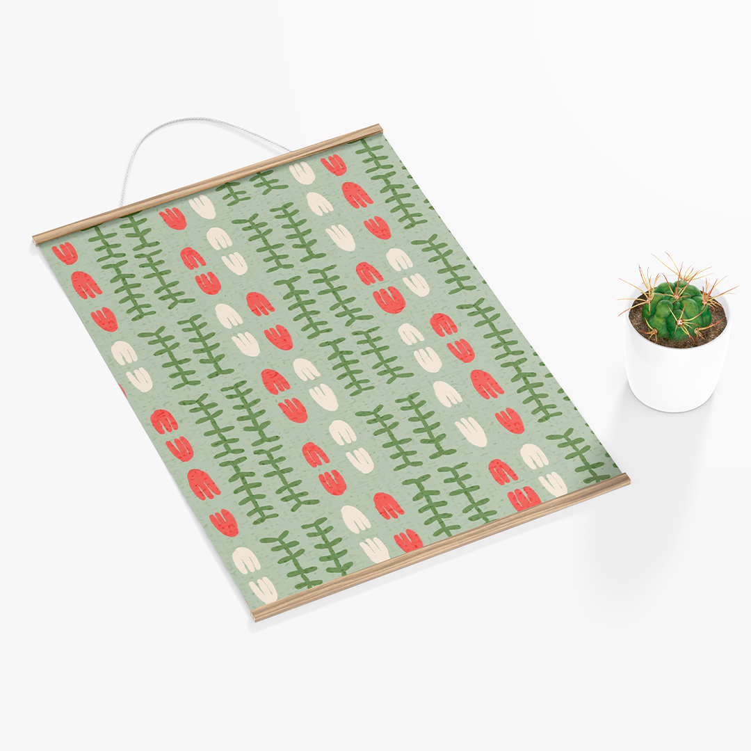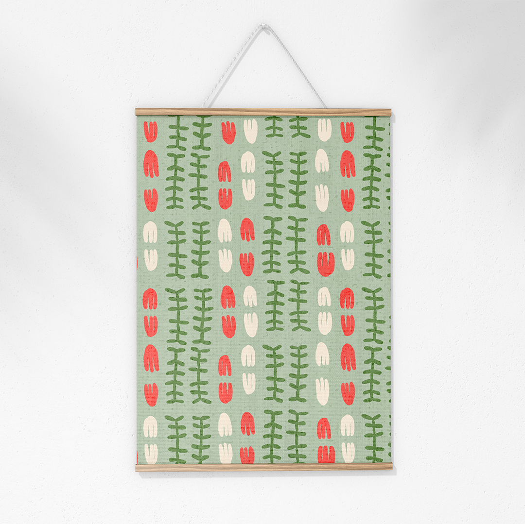 Wall Hanging - Seamless pattern Background Coral Red and Yellowish Green -m10072