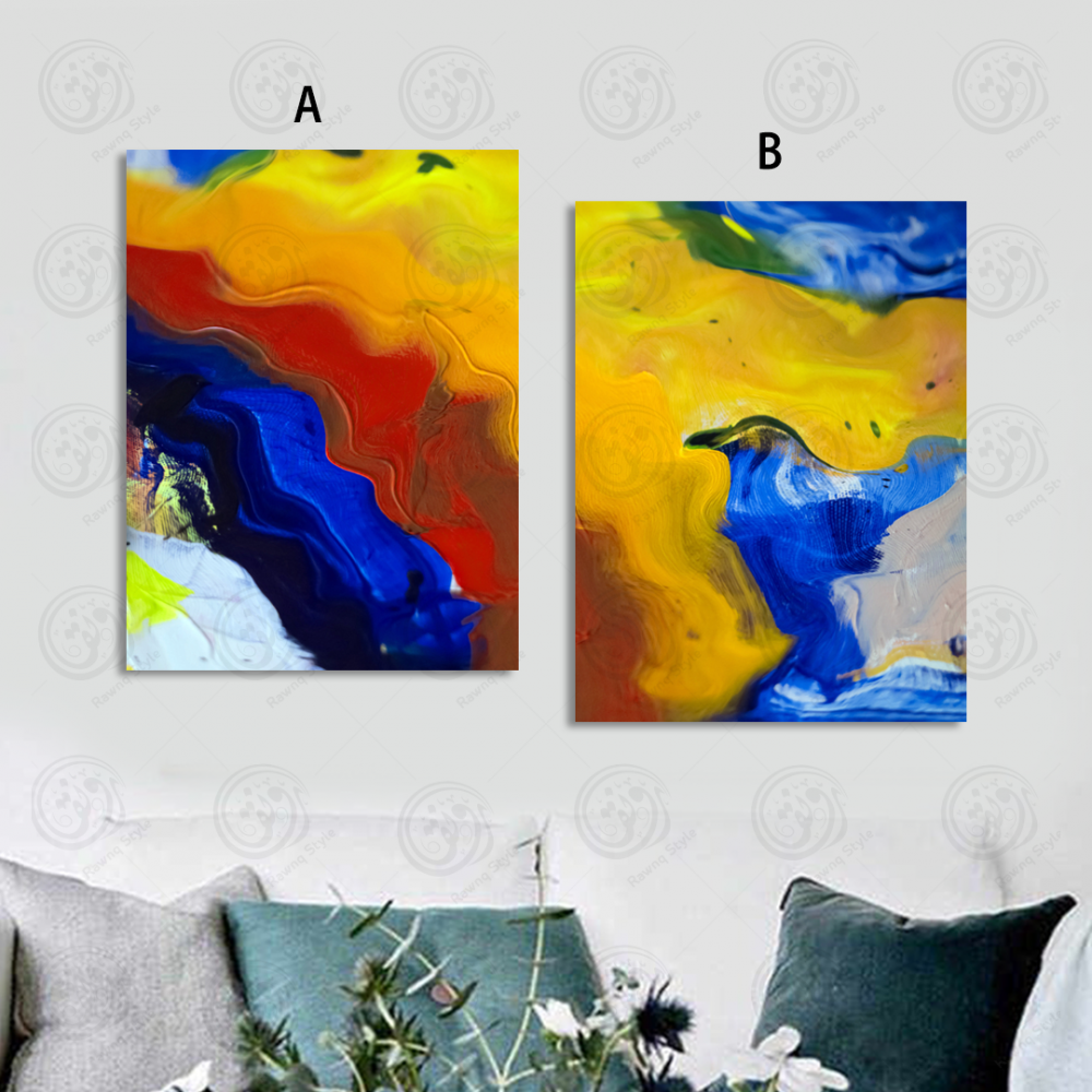 Abstract art paintings in shades of blue, yellow and red - E2PR-20425