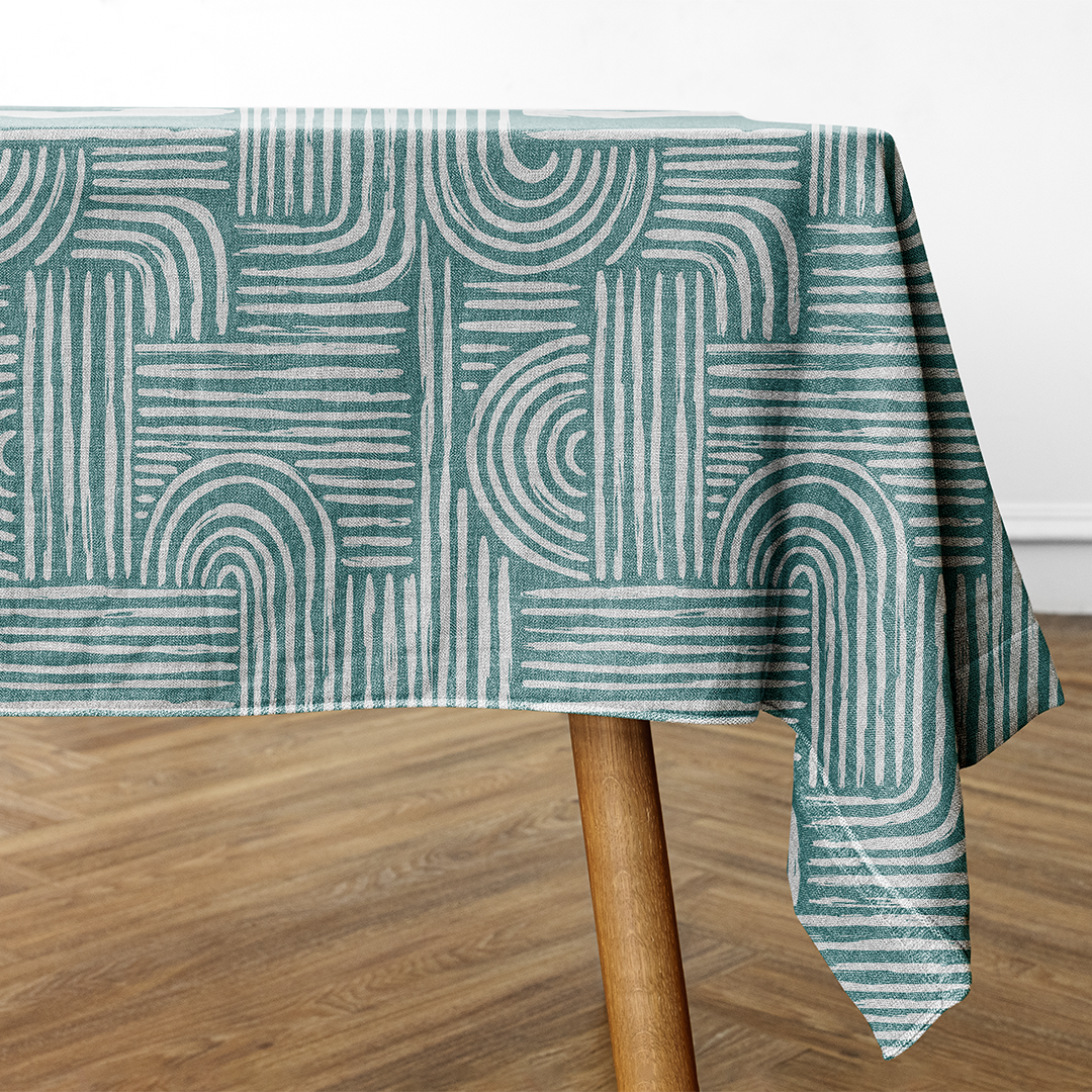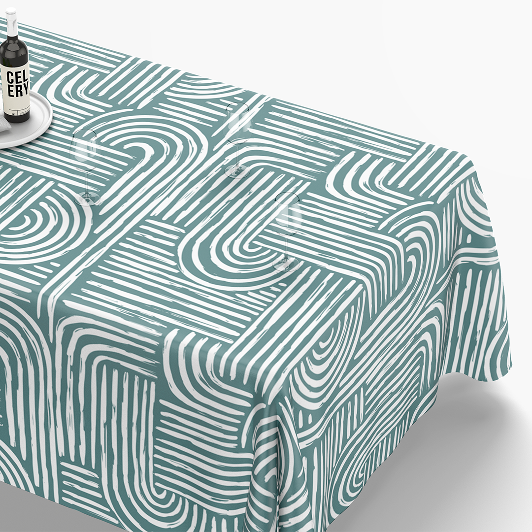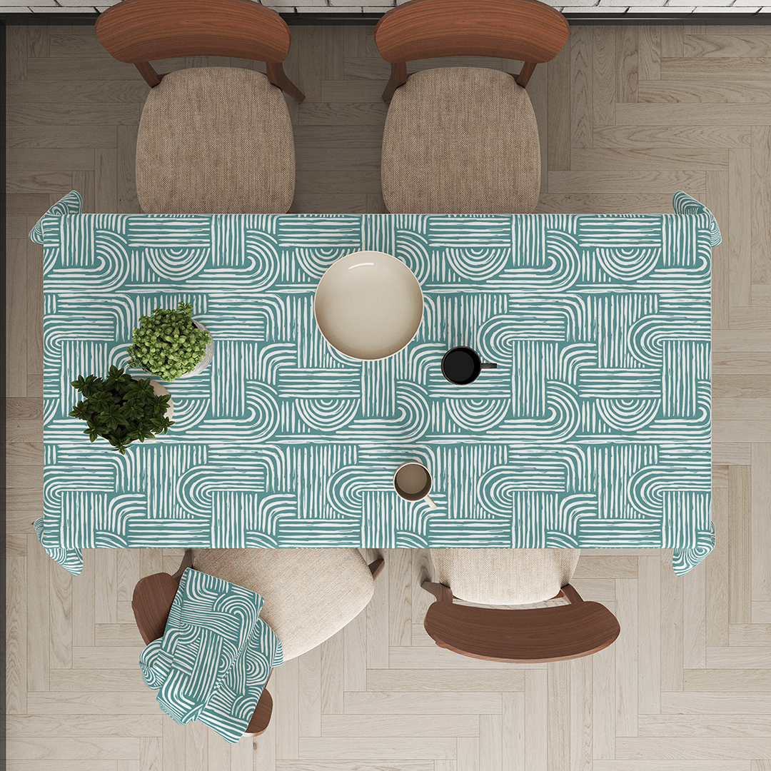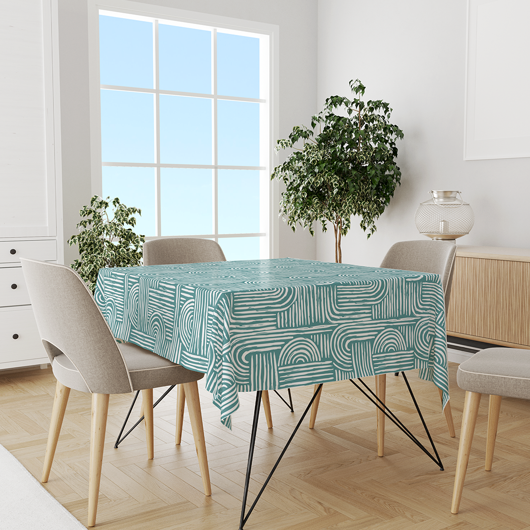 Rectangular Tablecloths - Minimal elegant line brush stroke shapes and line in nude colors Turquoise and white -m10014