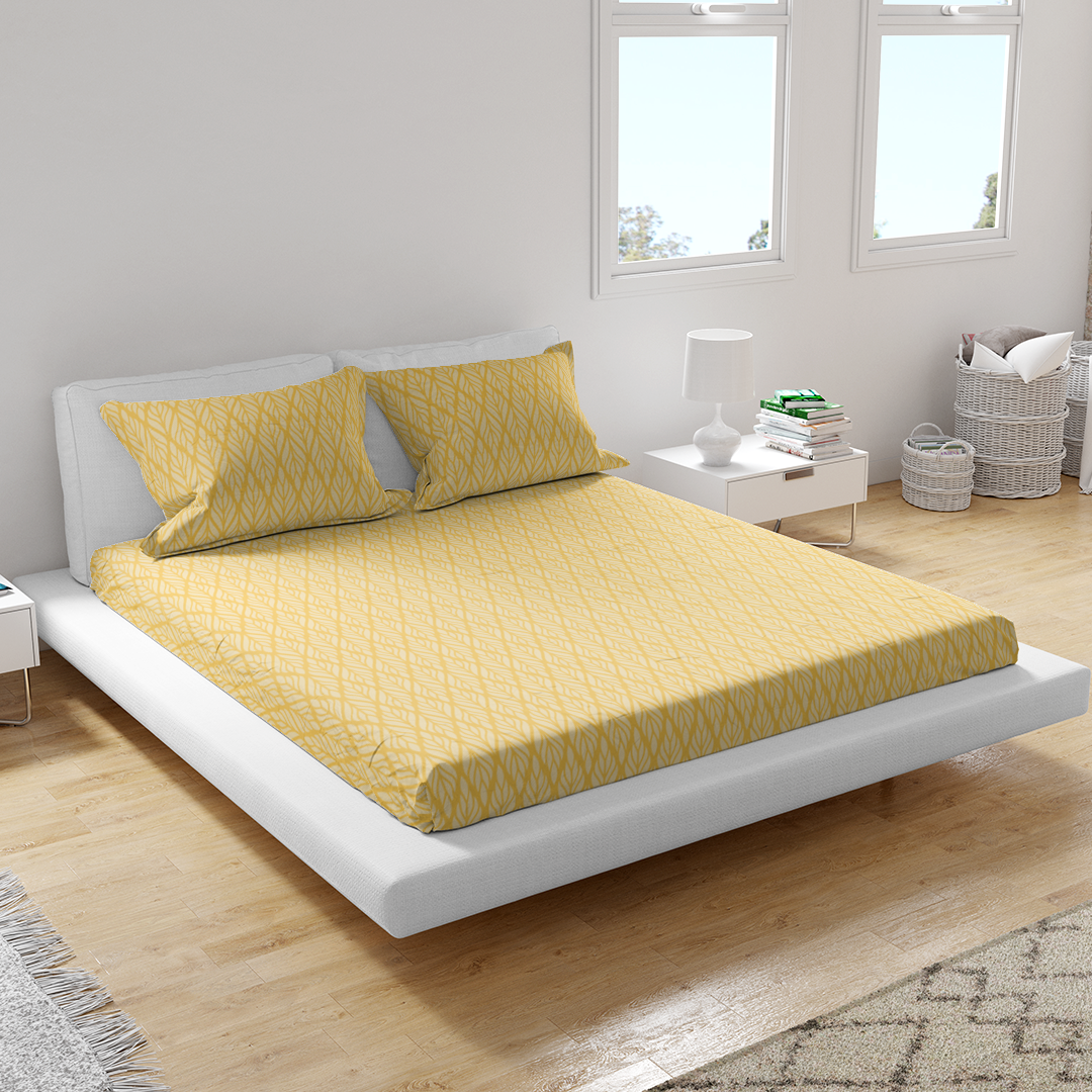 - Top hem of flat sheet and pillowcases feature a lovely folded detail with white top-stitching. Pillowcases have selected pattern on both front and back. Fitted sheet features continuous elastic hem for a secure fit. Fitted sheets suitable for up to 14" (36 cm) deep mattress.